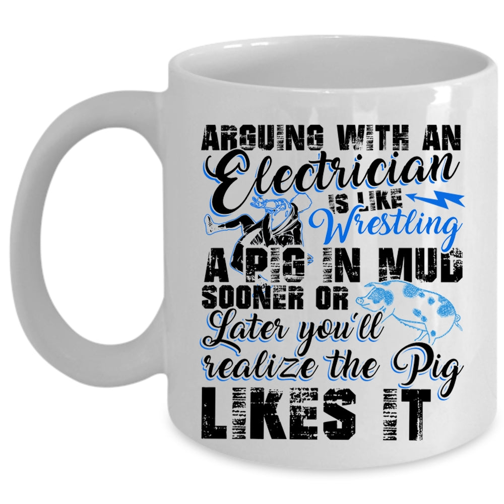 Cool Electrician Coffee Mug, Arguing With An Electrician Cup