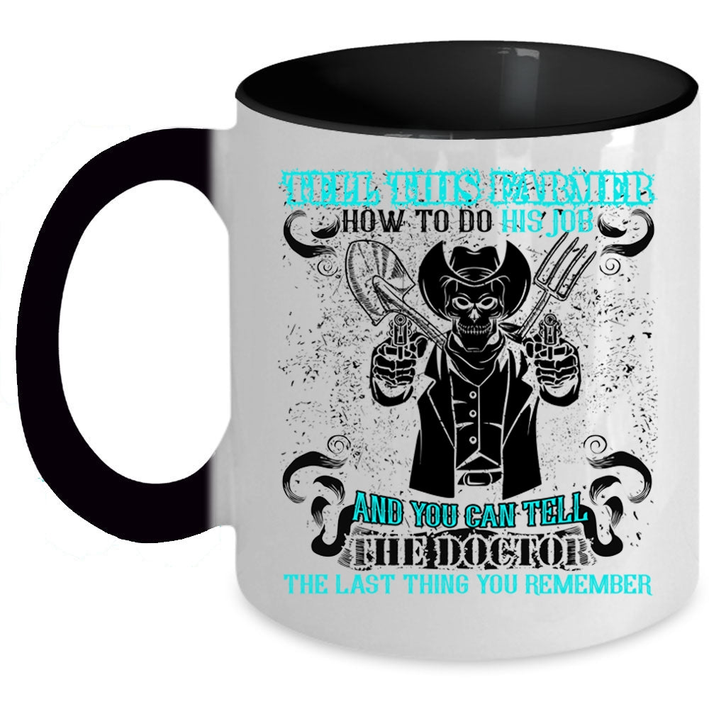 Cool Farmer Coffee Mug, Tell This Farmer How To Do His Job Accent Mug