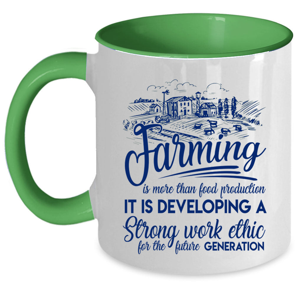 Cool Farming Coffee Mug, FarmingIs More Than Food Production Accent Mug
