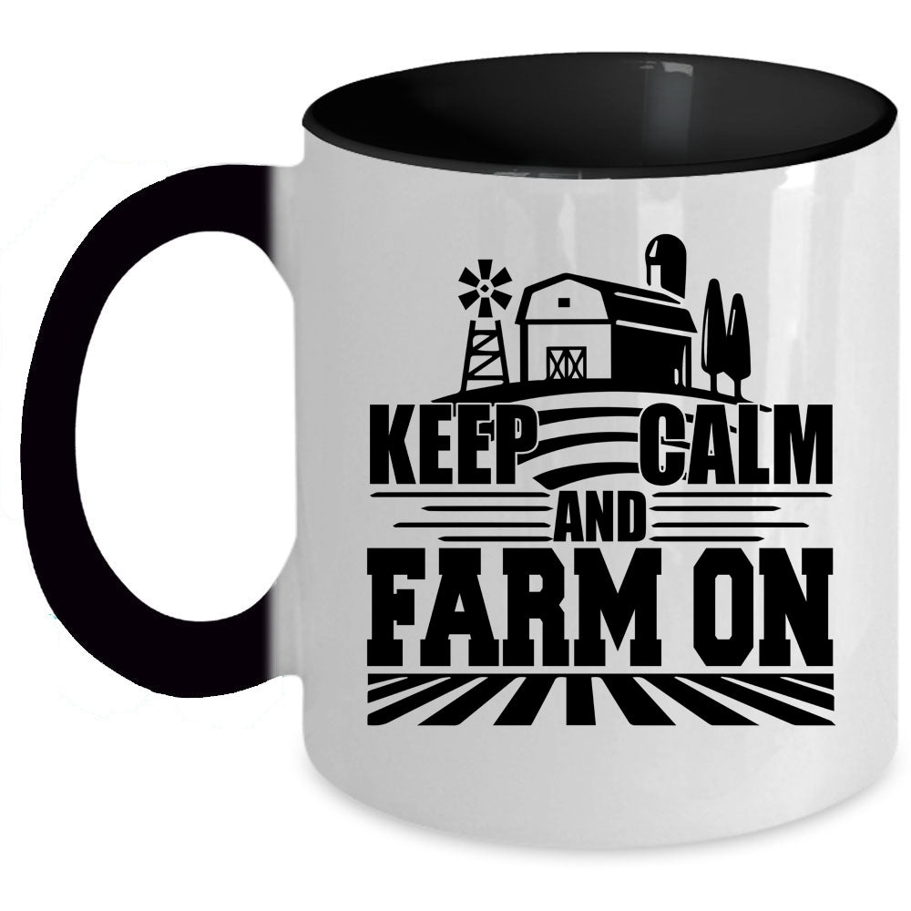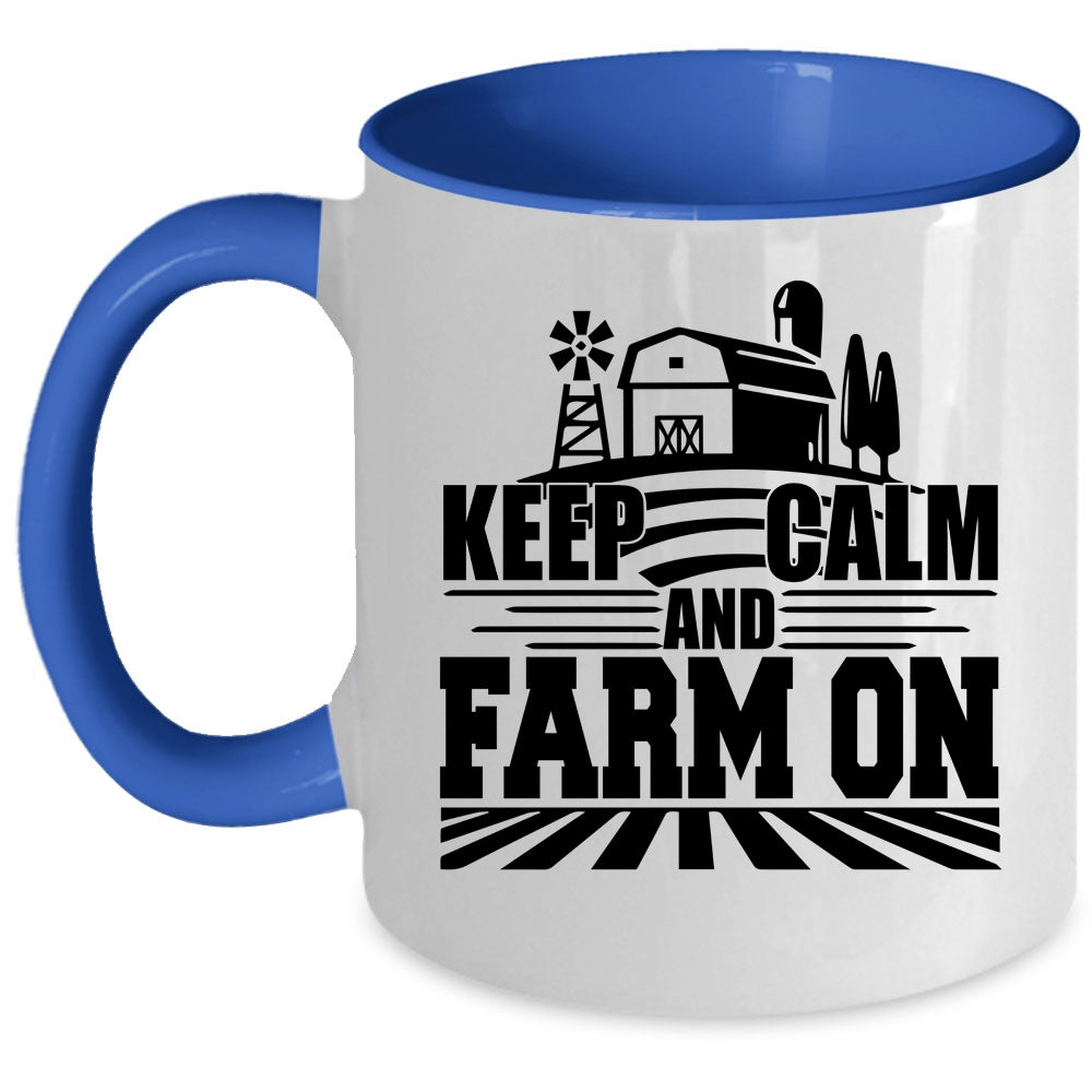 Cool Farming Coffee Mug, Keep Calm And Farm On Accent Mug