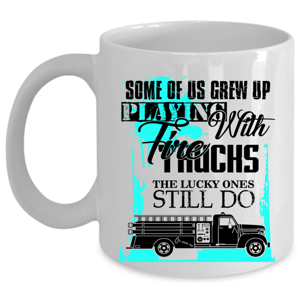 Cool Fire Trucker Coffee Mug, Grew Up Playing With Fire Trucks Cup