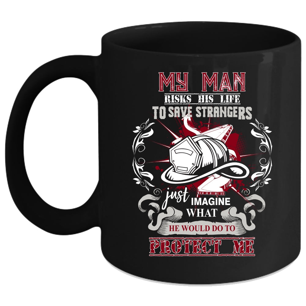 Cool Fireman Coffee Mug, My Man Protect Me Coffee Cup