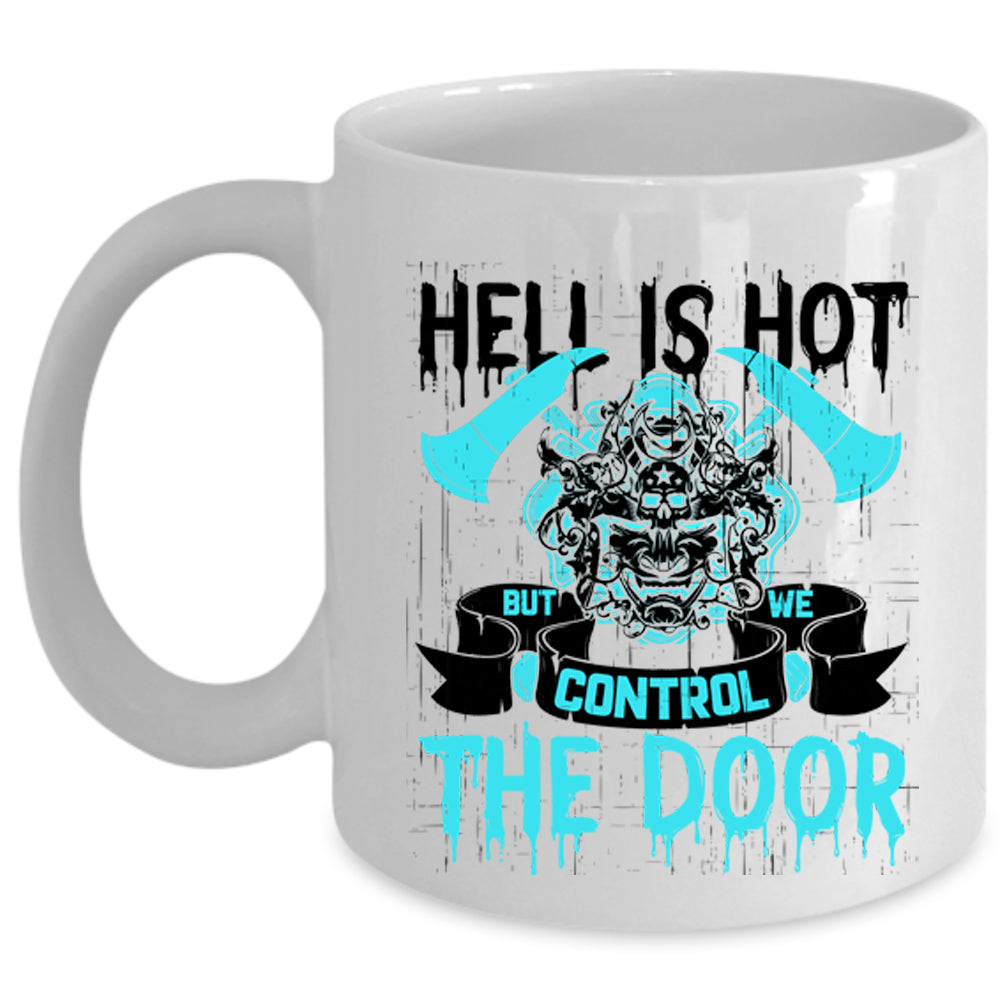 Cool Fireman Coffee Mug, We Control The Door Cup