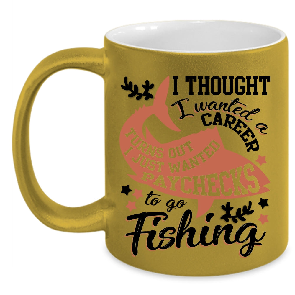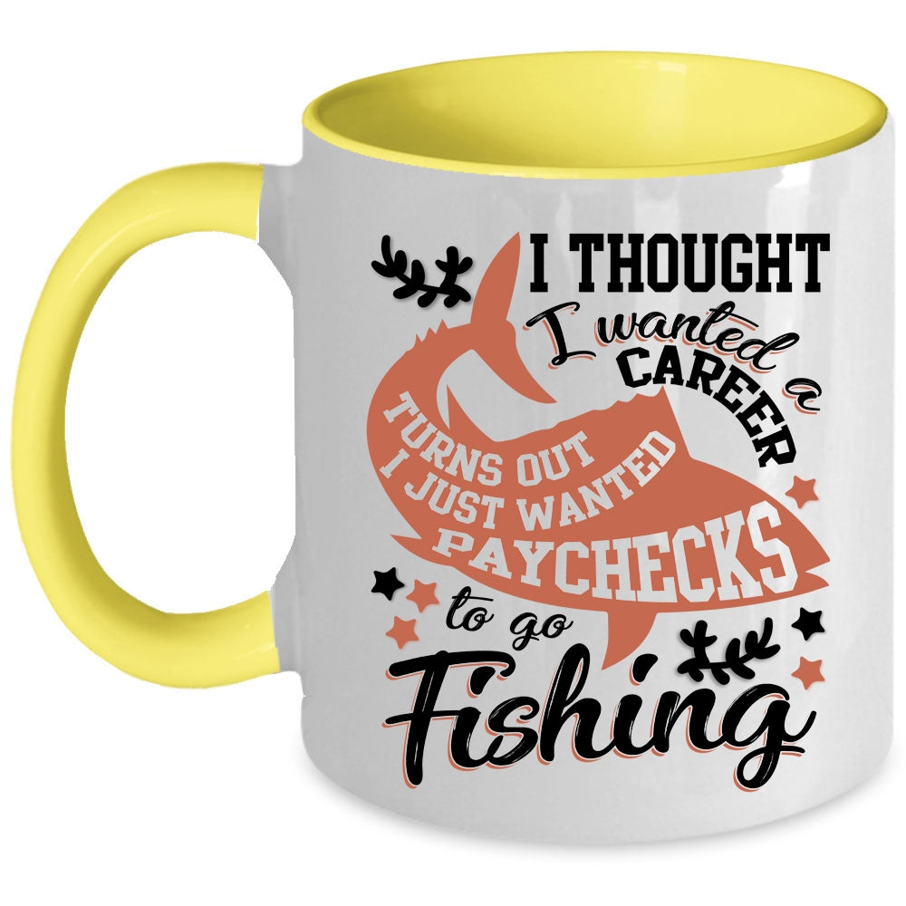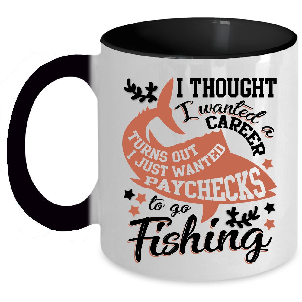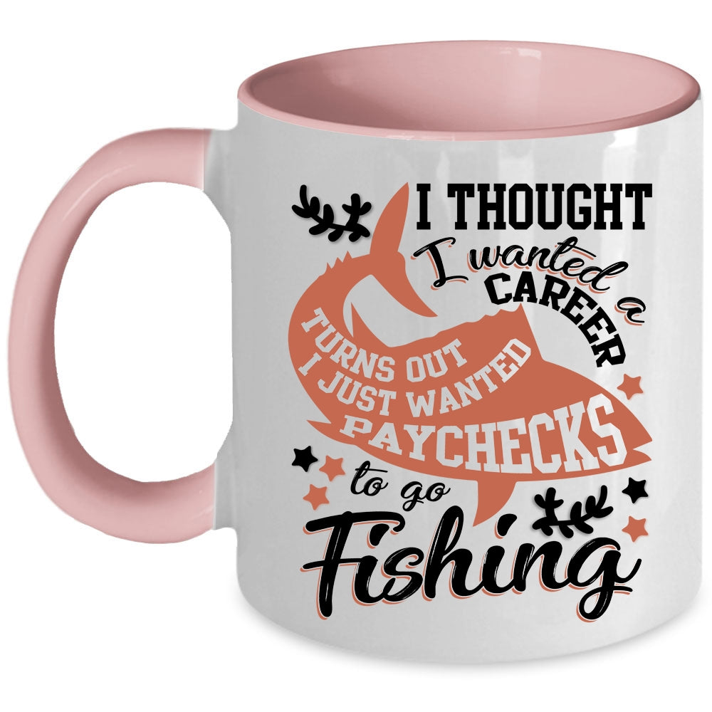 Cool Fishing Coffee Mug, I Just Wanted Paychecks To Go Fishing Accent Mug