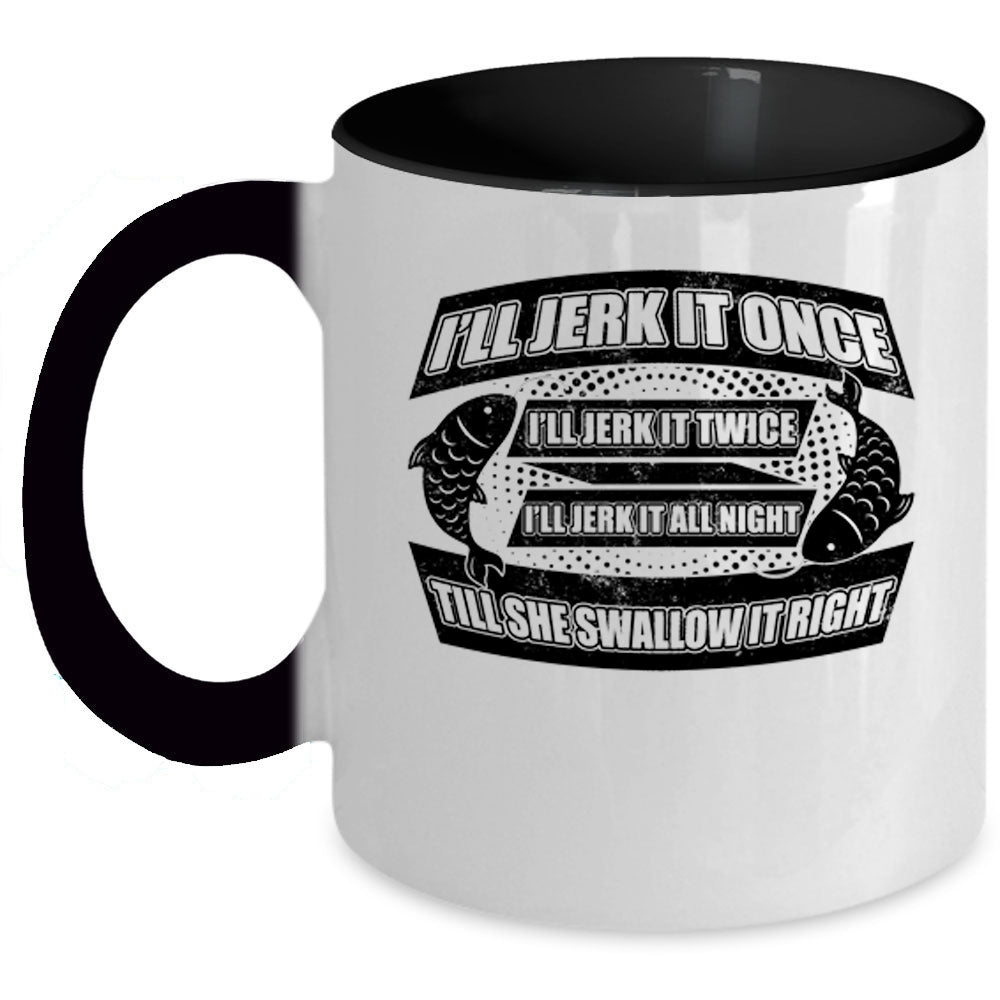 Cool Fishing Coffee Mug, I'll Jerk It Once I'll Jerk It Twice Accent Mug