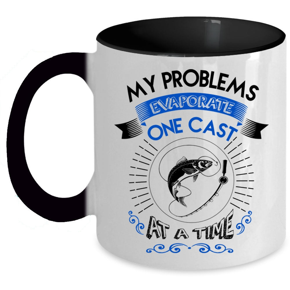 Cool Fishing Coffee Mug, My Problems Evaporate One Cast At A Time Accent Mug
