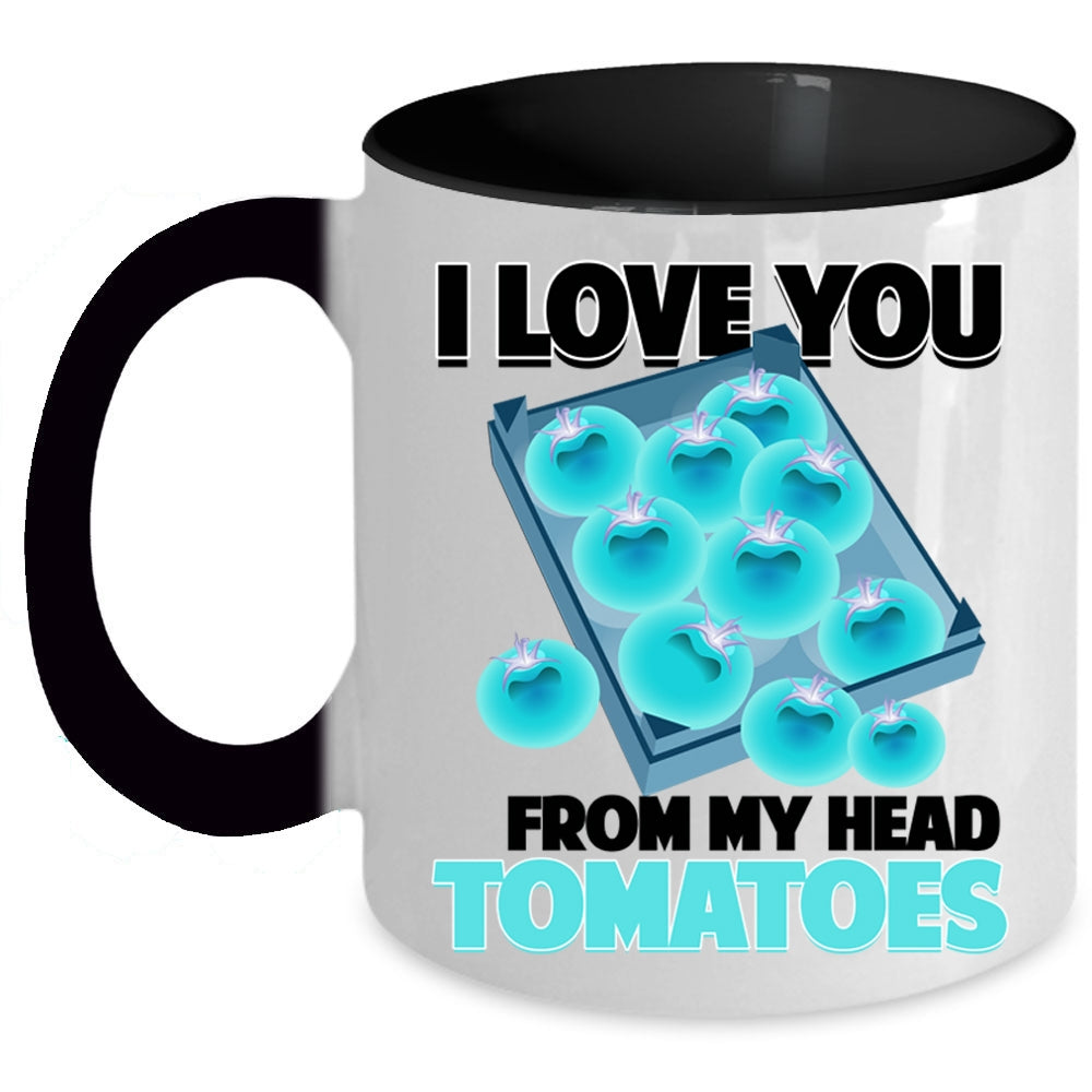 Cool Gardening Coffee Mug, I Love You From My Head Tomatoes Accent Mug