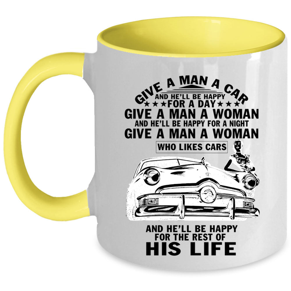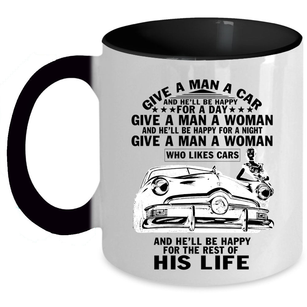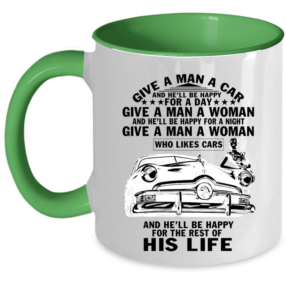 Cool Gift For Car Driver Coffee Mug, Give A Man A Car Accent Mug