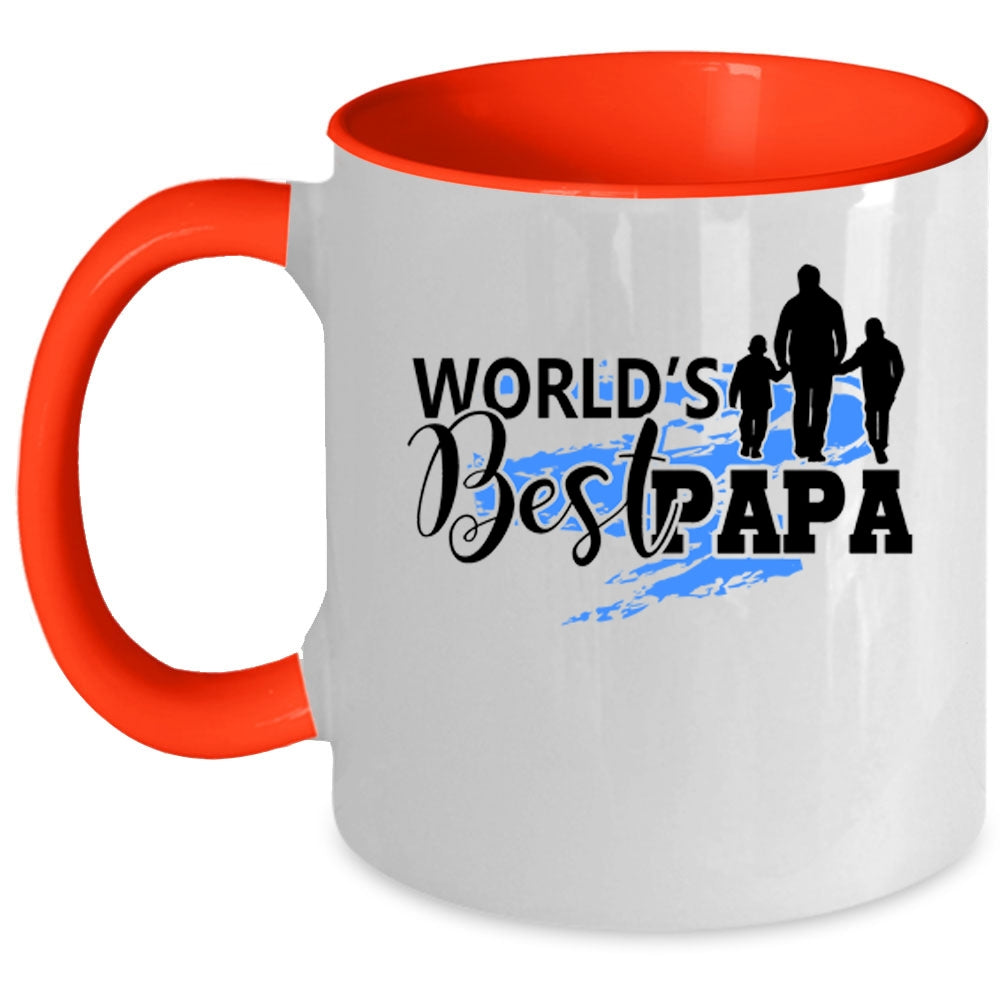 Cool Gift For Dad Coffee Mug, World's Best Papa Accent Mug