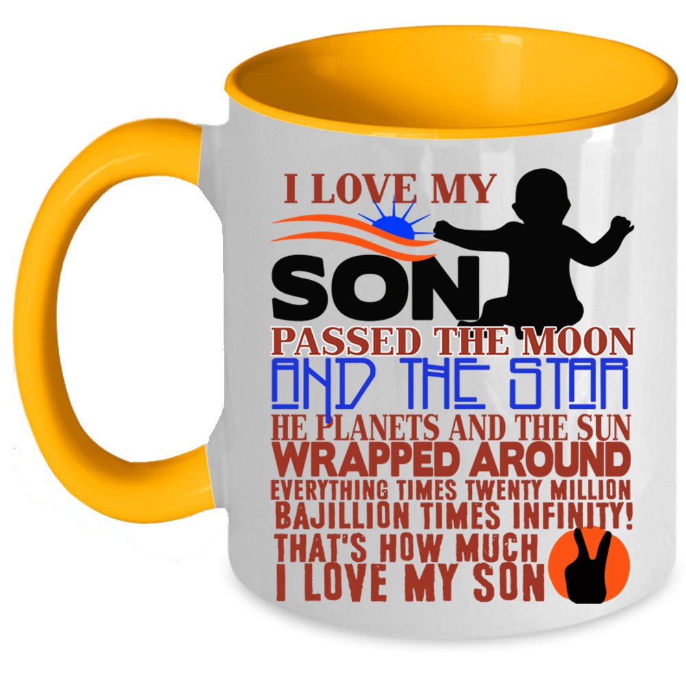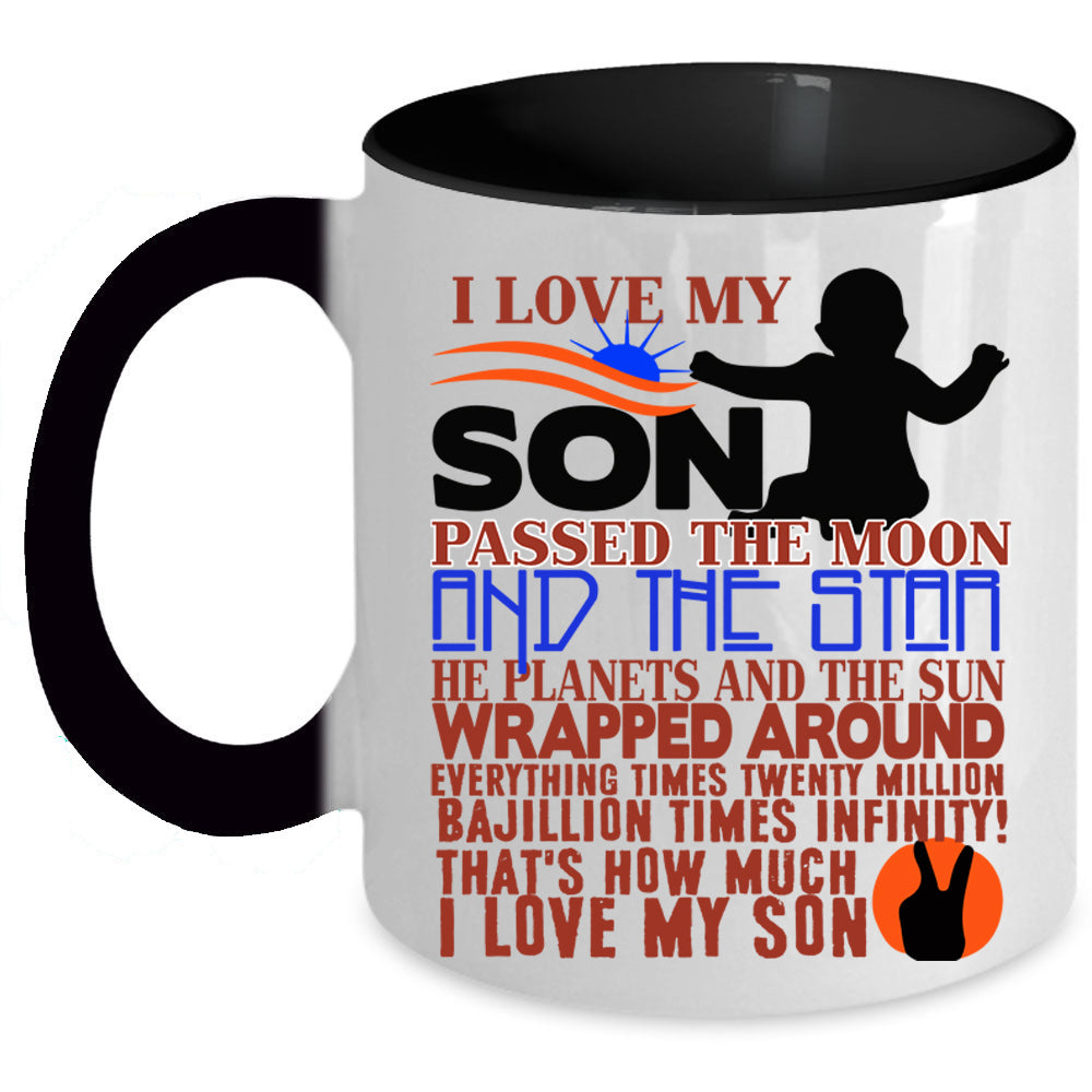 Cool Gift For Mom Coffee Mug, I Love My Son Accent Mug