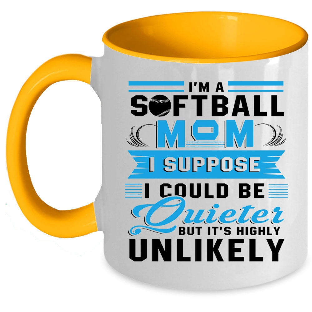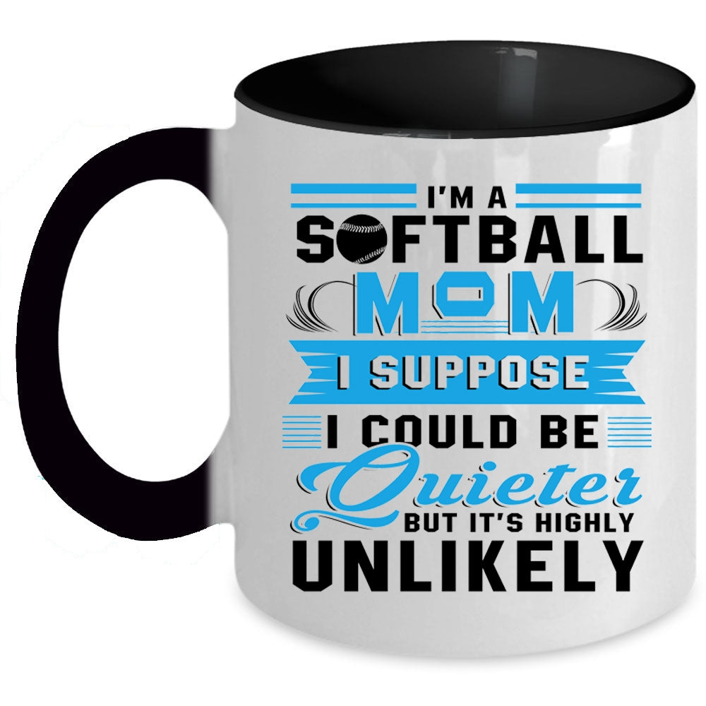 Cool Gift For Mom Coffee Mug, I'm A Softball Mom Accent Mug