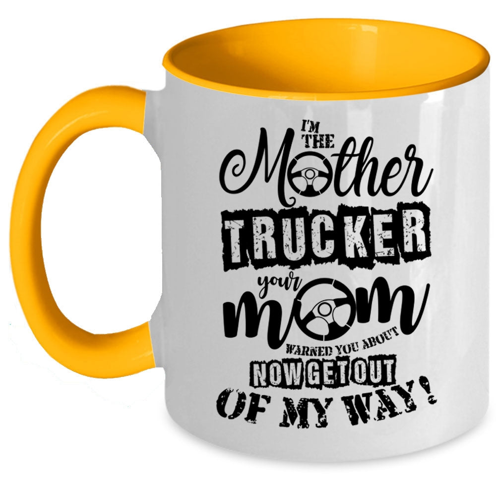 Cool Gift For Mom Coffee Mug, I'm The Mother Trucker Accent Mug