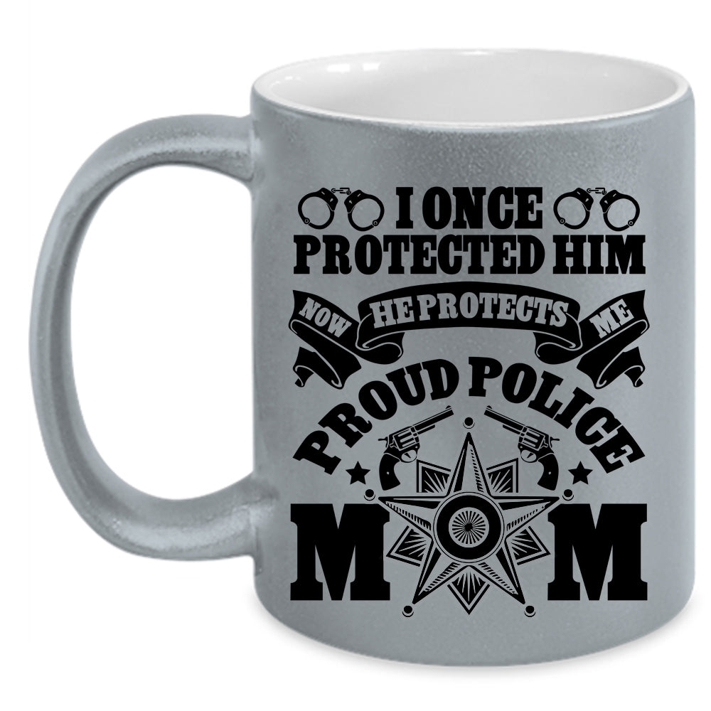 Cool Gift For Mom Coffee Mug, Proud Police Mom Accent Mug