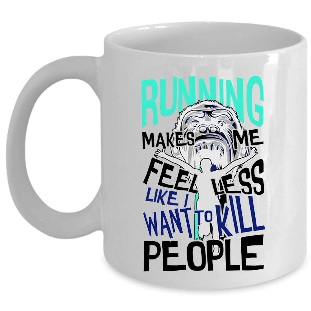 Cool Gift For Runner Coffee Mug, Running Makes Me Feel Less Cup