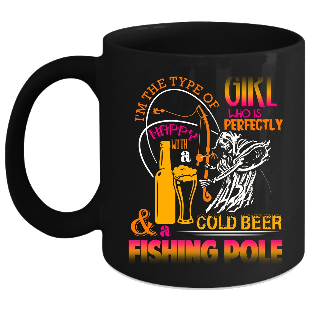 Cool Girls Coffee Mug, Happy With A Cold Beer And Fishing Pole Coffee Cup
