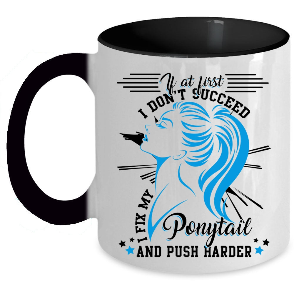Cool Girls Coffee Mug, I Fix My Ponytail And Push Harder Accent Mug