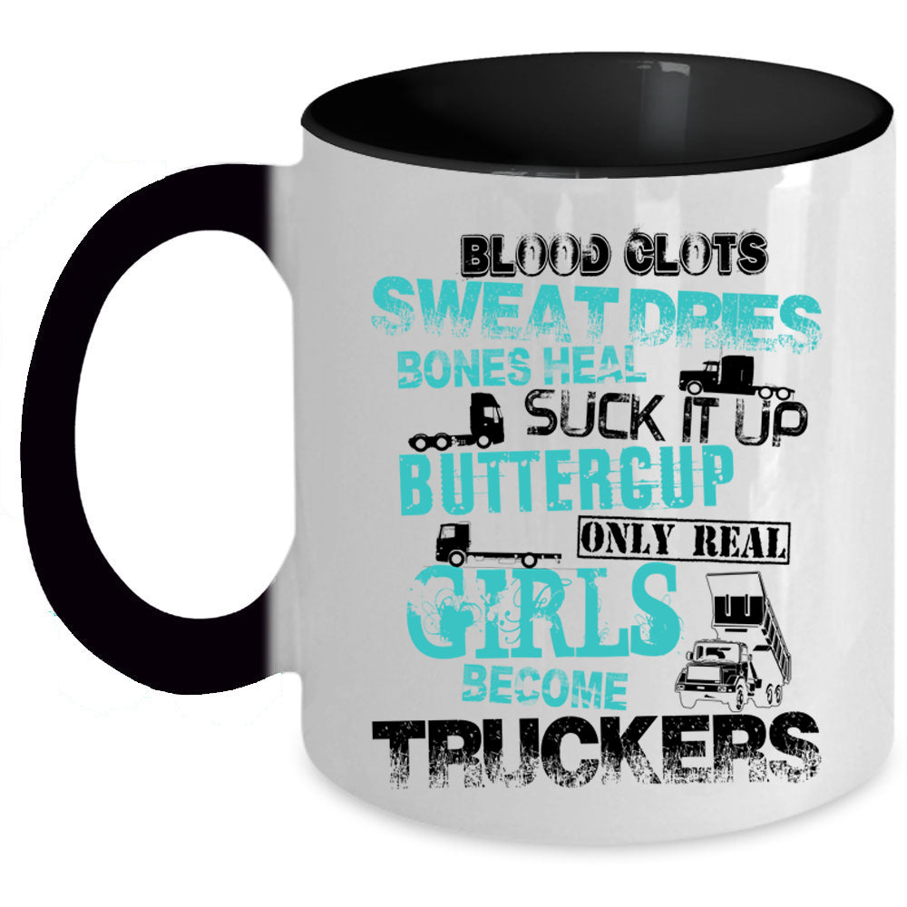 Cool Girls Coffee Mug, Only Real Girls Become Truckers Accent Mug
