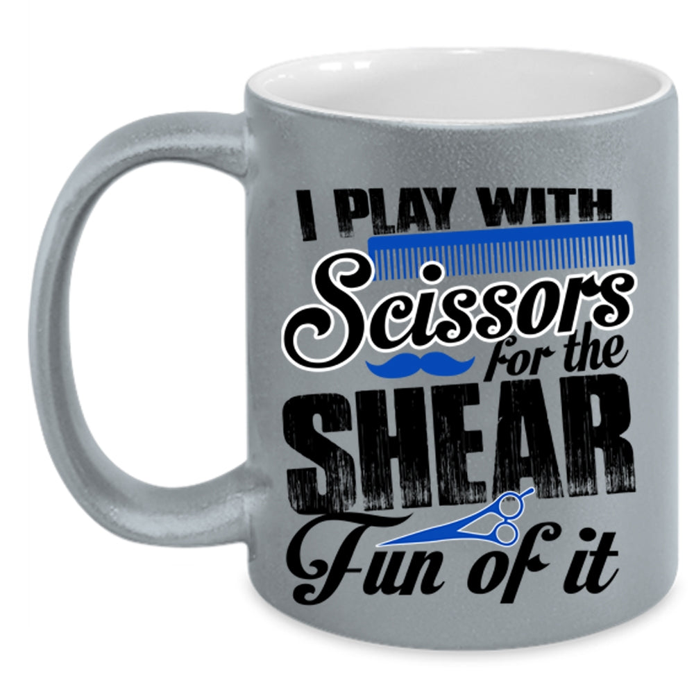 Cool Hair Stylist Coffee Mug, I Play With Scissors For The Shear Accent Mug
