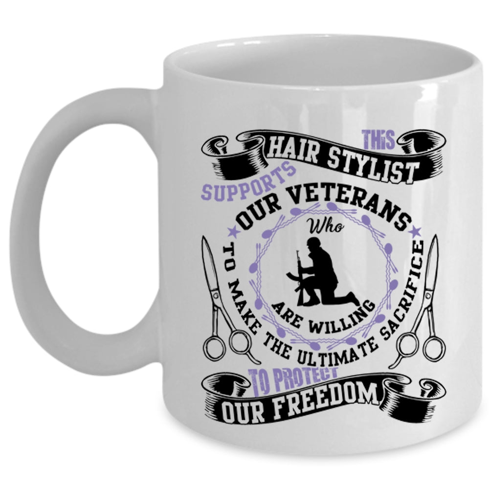 Cool Hair Stylist Coffee Mug, This Hair Stylist Supports Our Veterans Cup