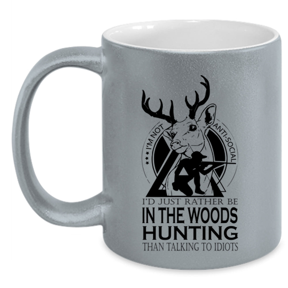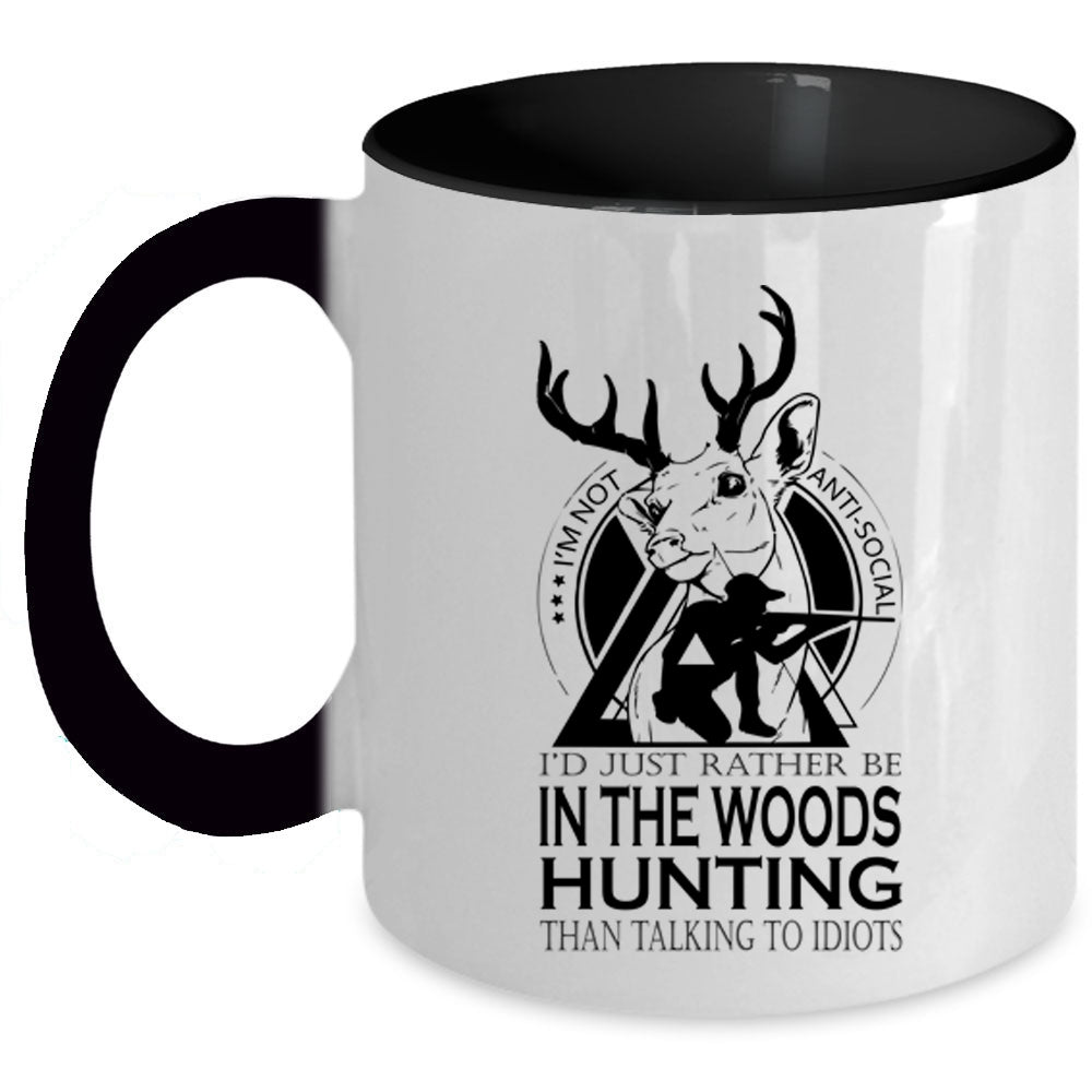 Cool Hunt Coffee Mug, I'd Just Rather Be In The Woods Hunting Accent Mug