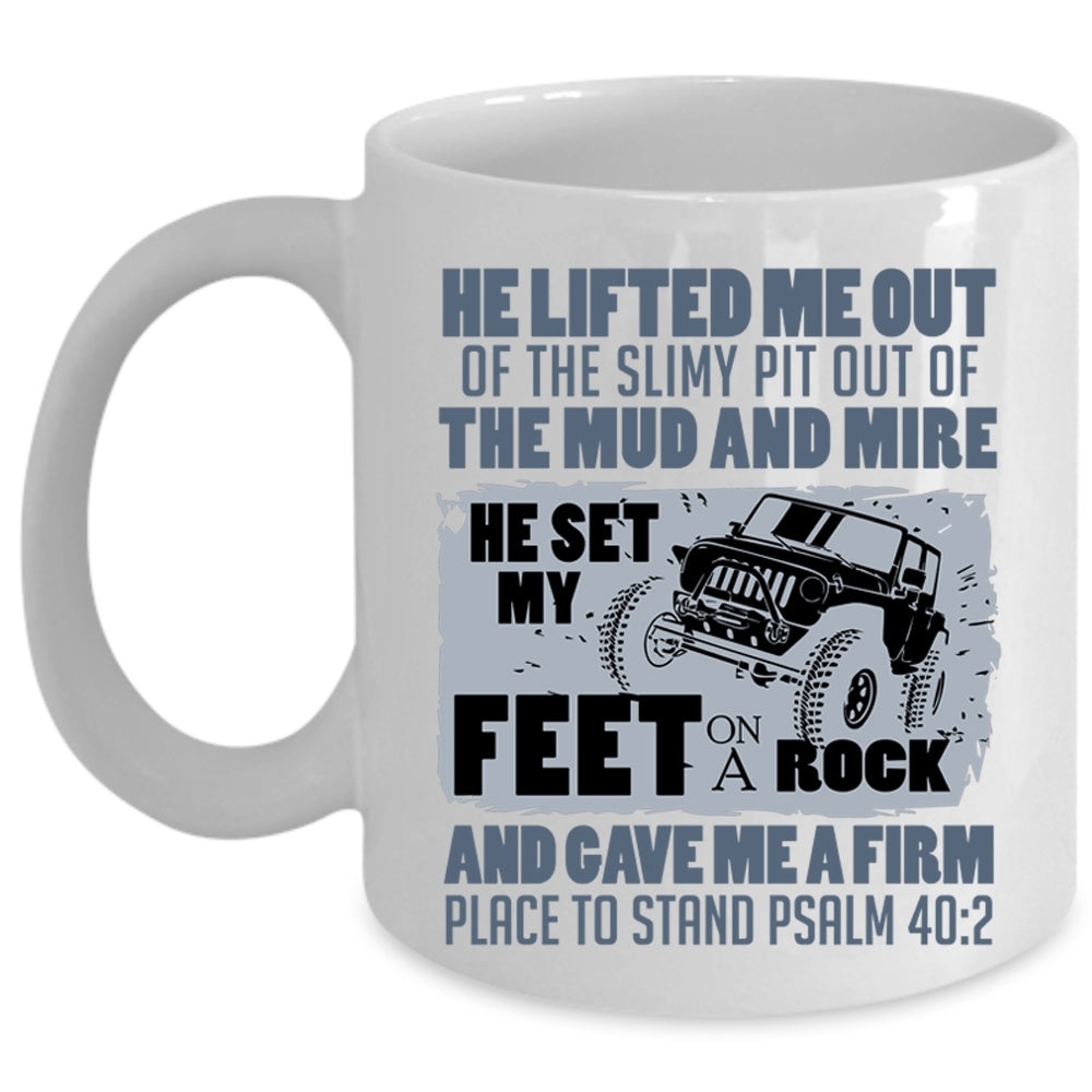 Cool Jeep Guy Coffee Mug, He Set My Feet on A Rock Cup