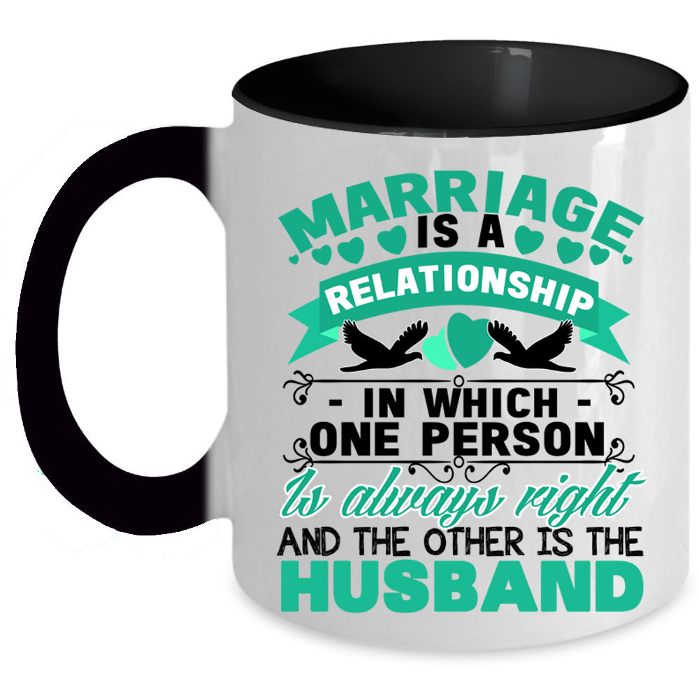 Cool Just Married Coffee Mug, Marriage Is A Relationship Accent Mug