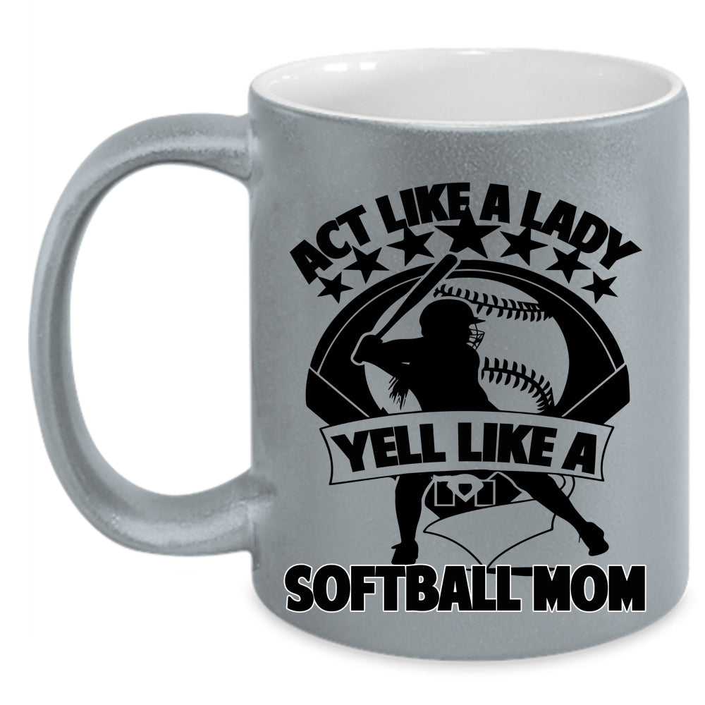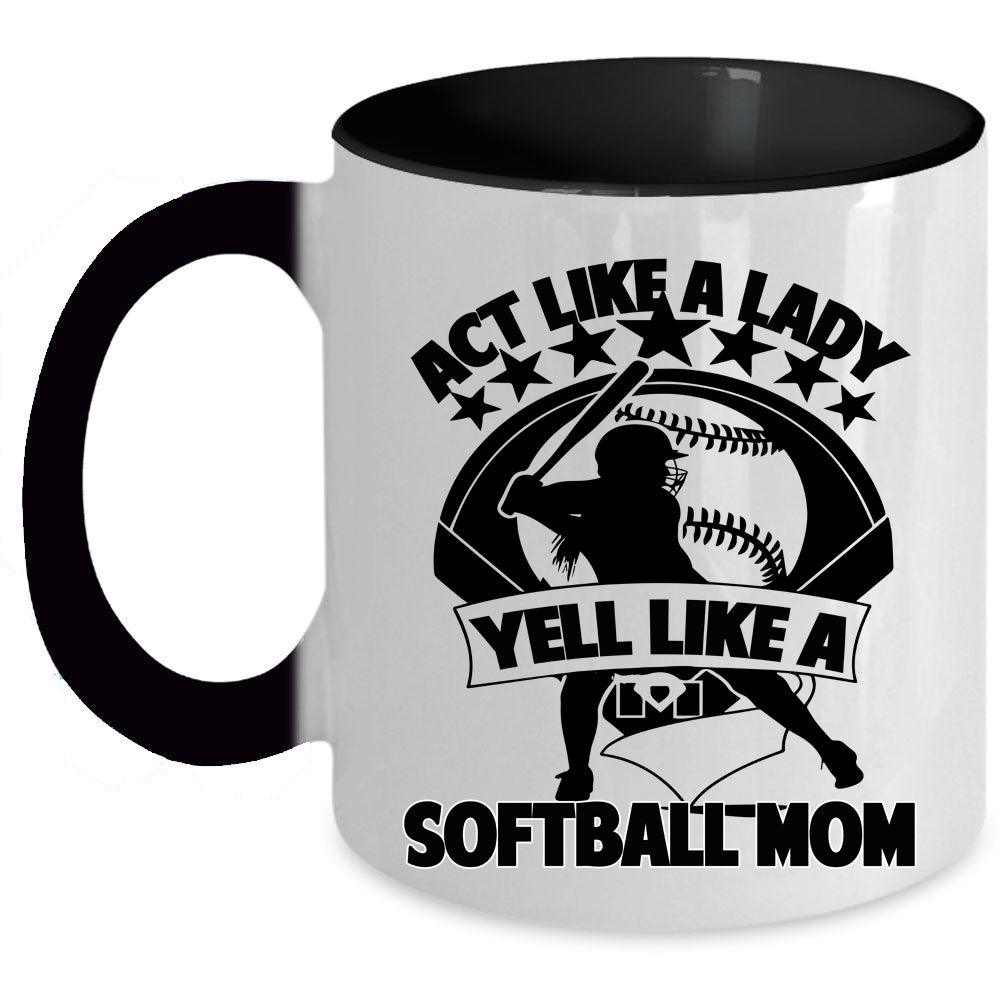 Cool Lady Coffee Mug, Act Like A Lady Yell Like A Softball Mom Accent Mug