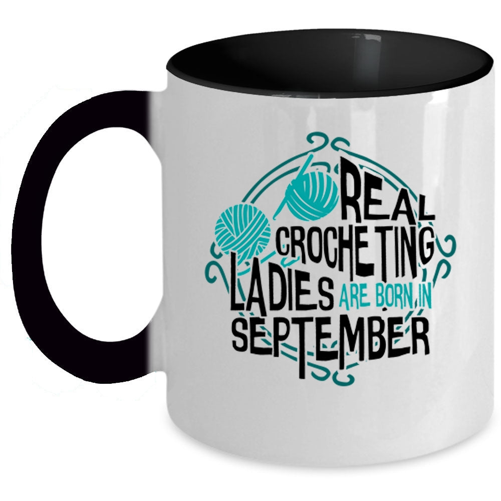 Cool Lady Coffee Mug, Real Crocheting Ladies Are Born In September Accent Mug