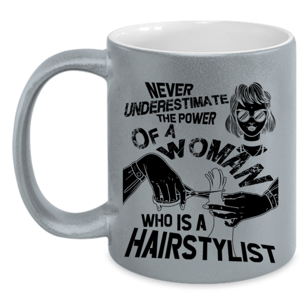 Cool Lady Coffee Mug, The Power Of A Woman Is A Hairstylist Accent Mug