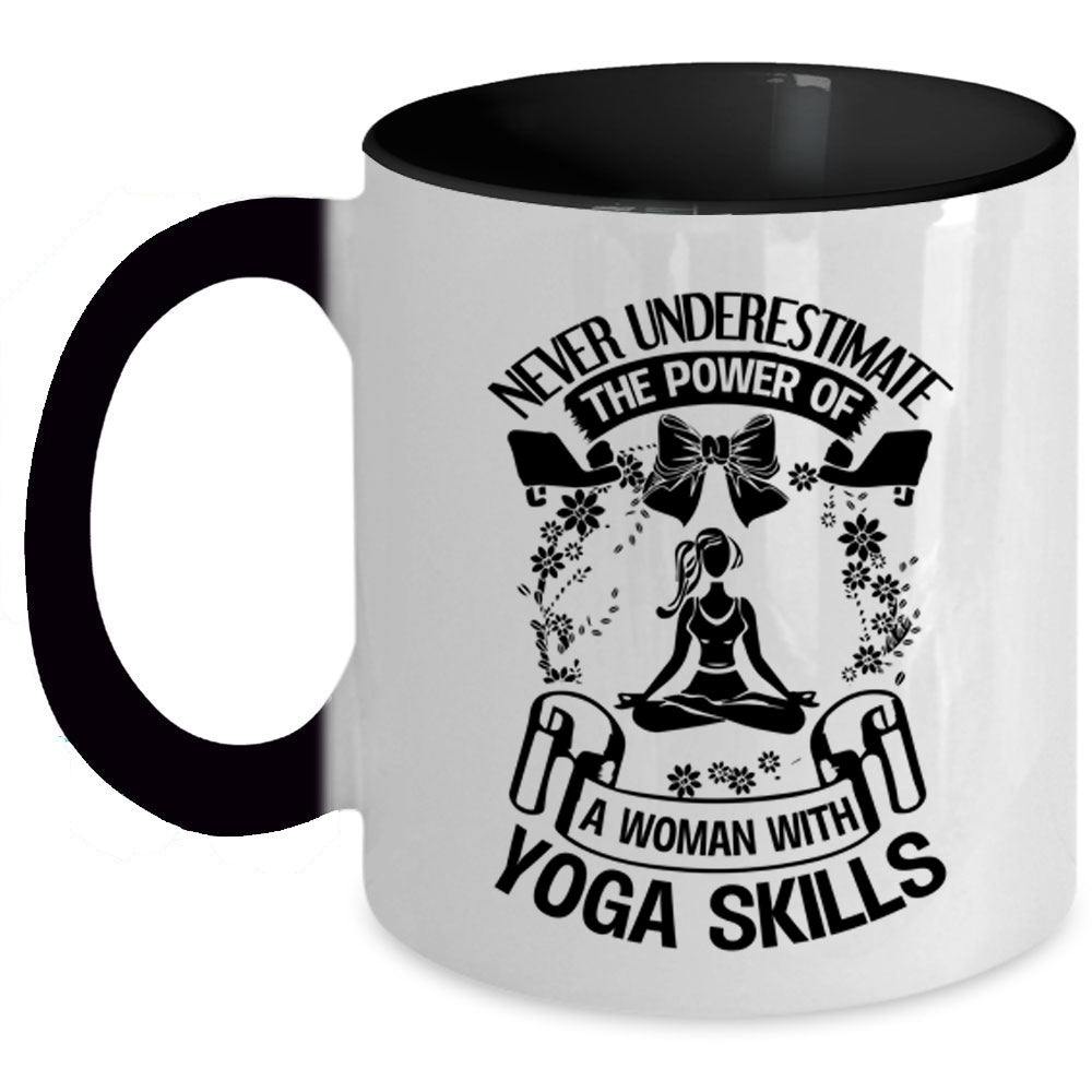 Cool Lady Coffee Mug, The Power Of A Woman With Yoga Skills Accent Mug