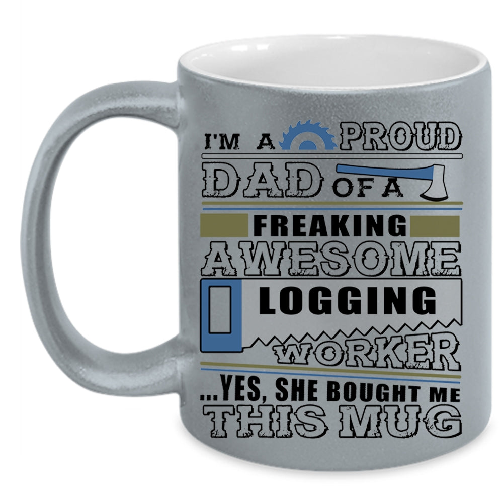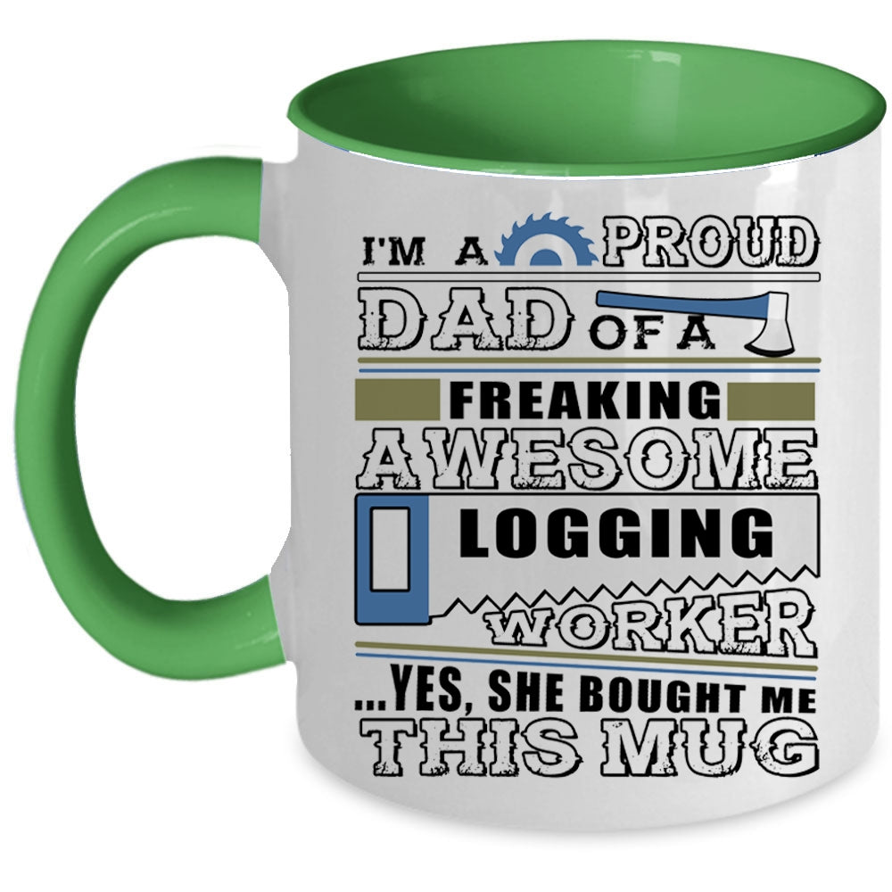 Cool Logger's Dad Coffee Mug, I'm A Proud Dad Of A Logging Worker Accent Mug