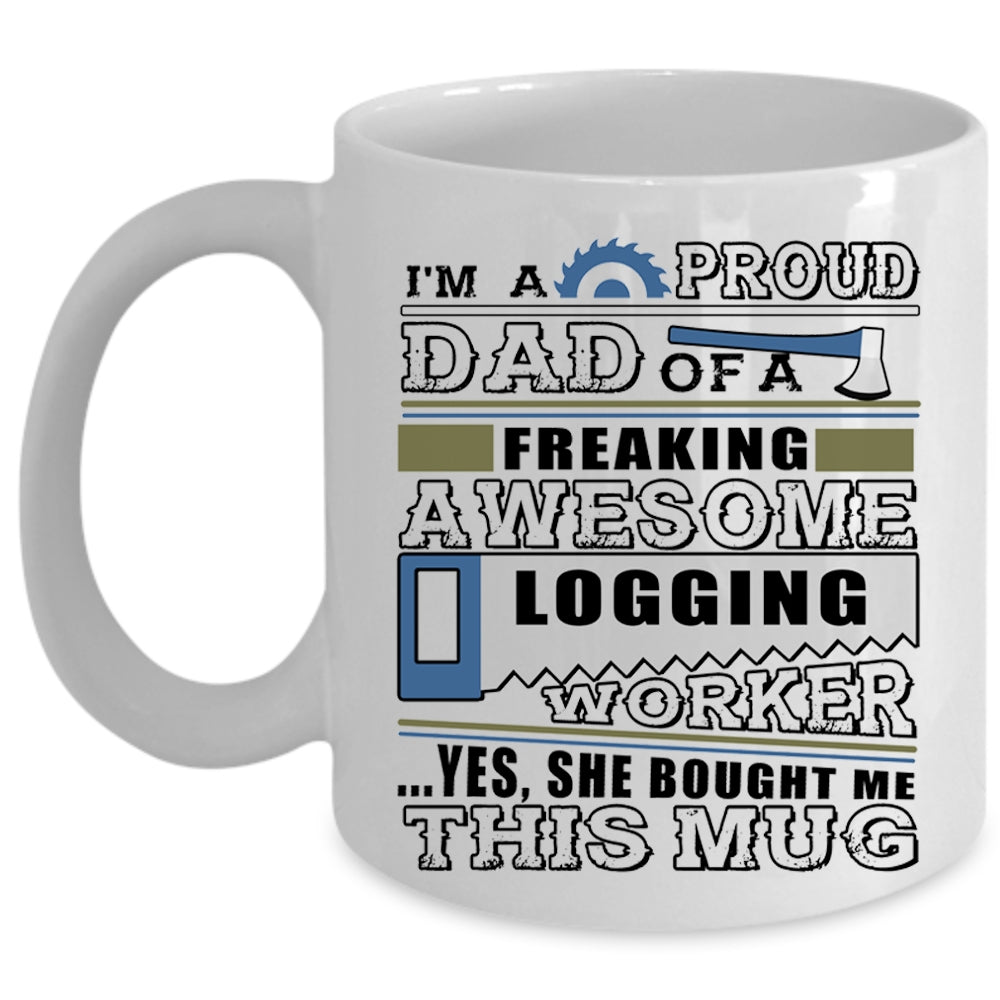 Cool Logger's Dad Coffee Mug, I'm A Proud Dad Of A Logging Worker Cup