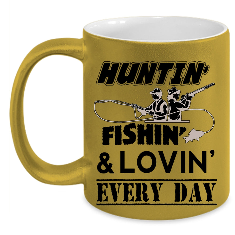 Cool Loving Coffee Mug, Hunting Fishing Every Day Accent Mug