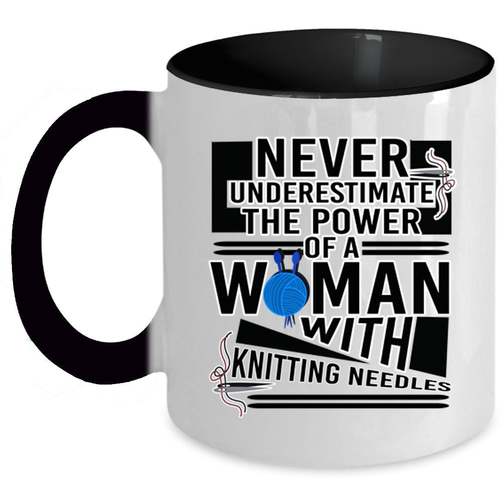 Cool Mom Coffee Mug, The Power Of A Woman With Knitting Needles Accent Mug