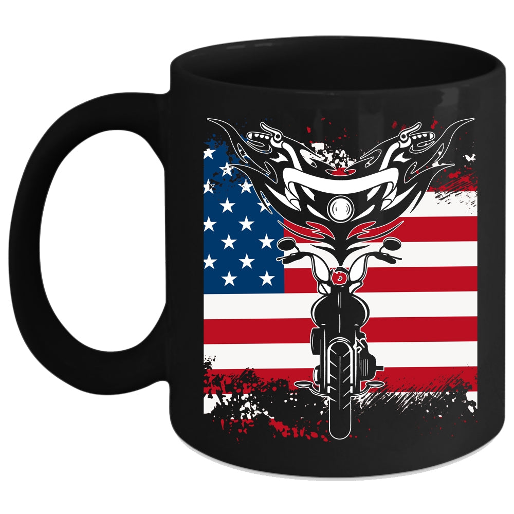 Cool Motorcycles Coffee Mug, American Flag Coffee Cup