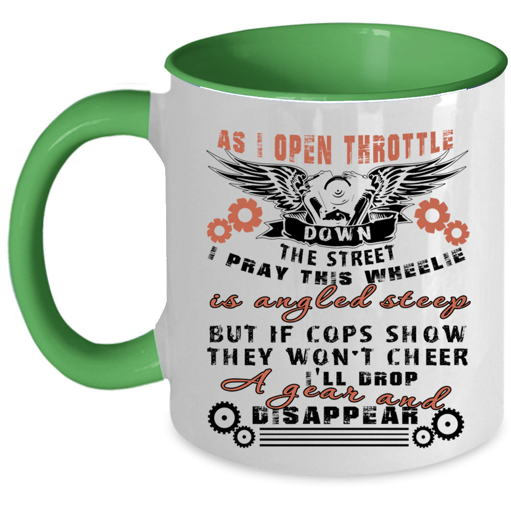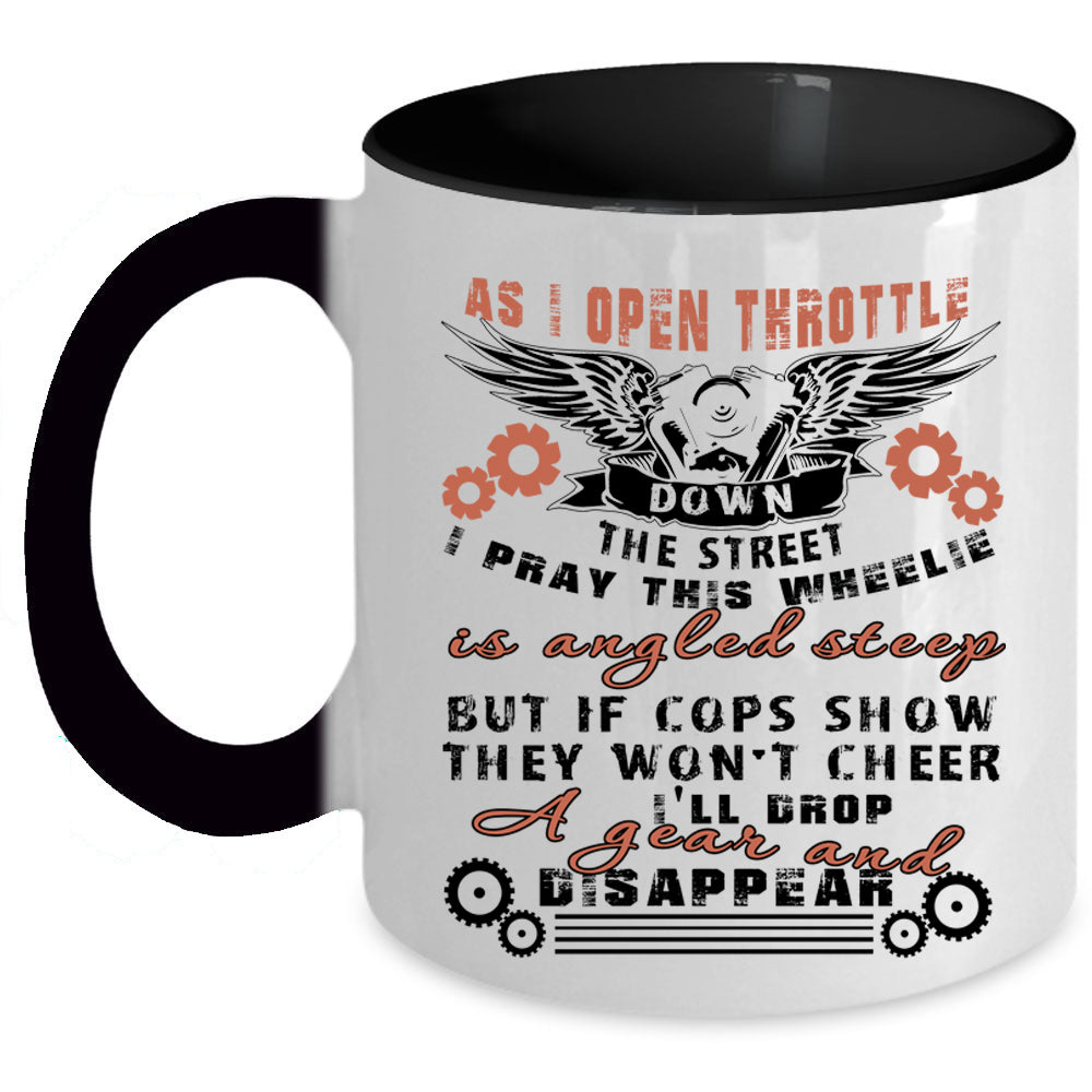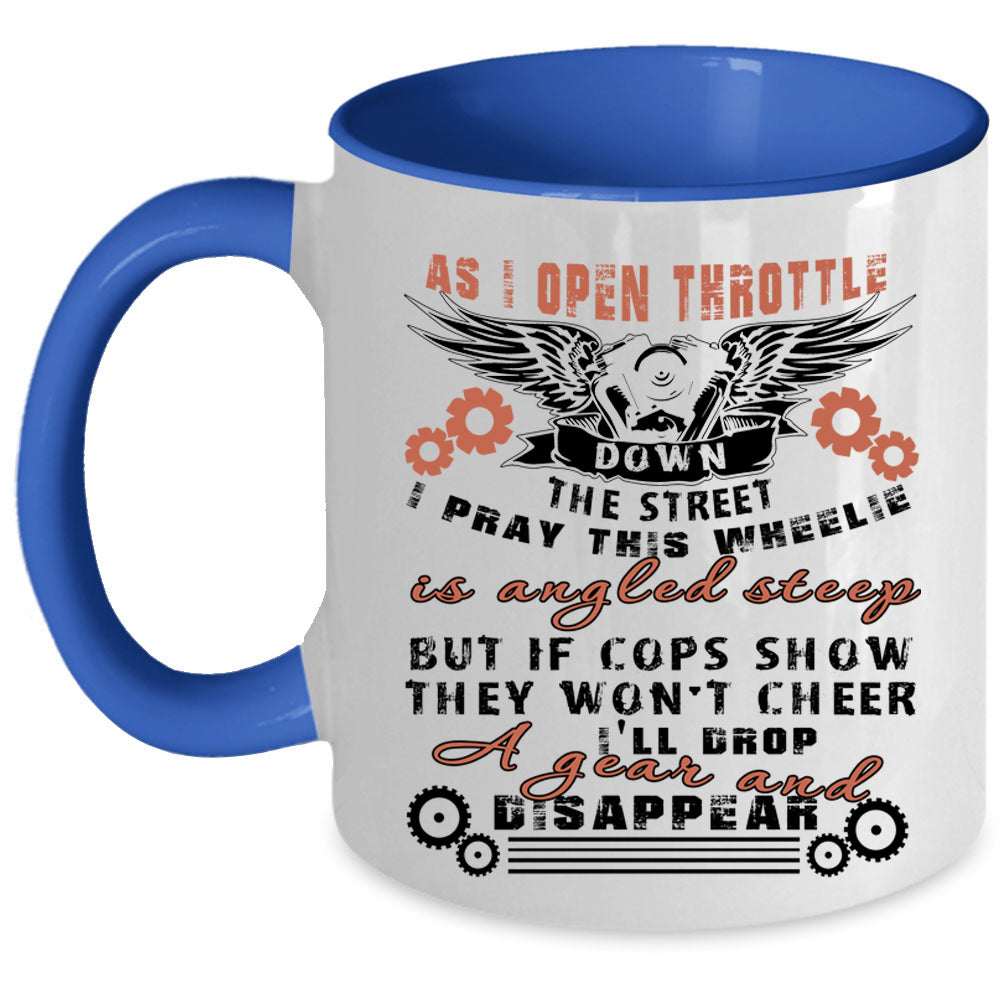 Cool Motorcycles Coffee Mug, I Pray This Wheelie Is Angled Steep Accent Mug
