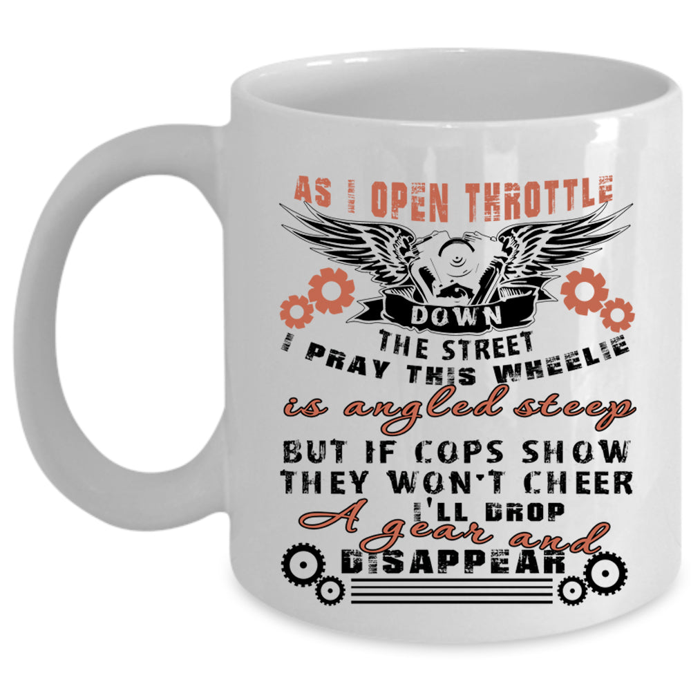 Cool Motorcycles Coffee Mug, I Pray This Wheelie Is Angled Steep Cup