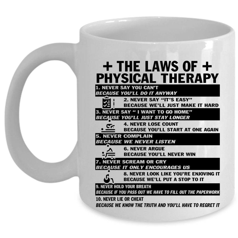 Cool Physical Therapist Coffee Mug, The Laws Of Physical Therapy Cup