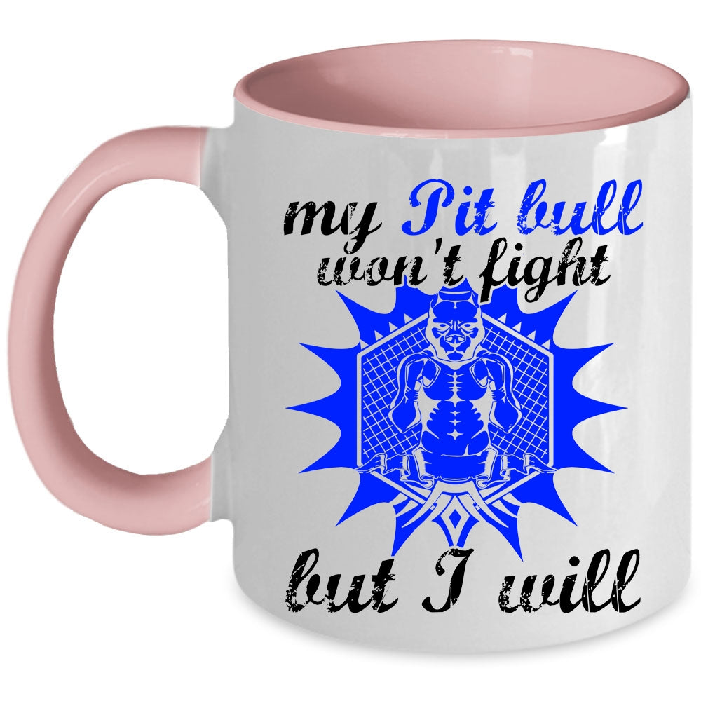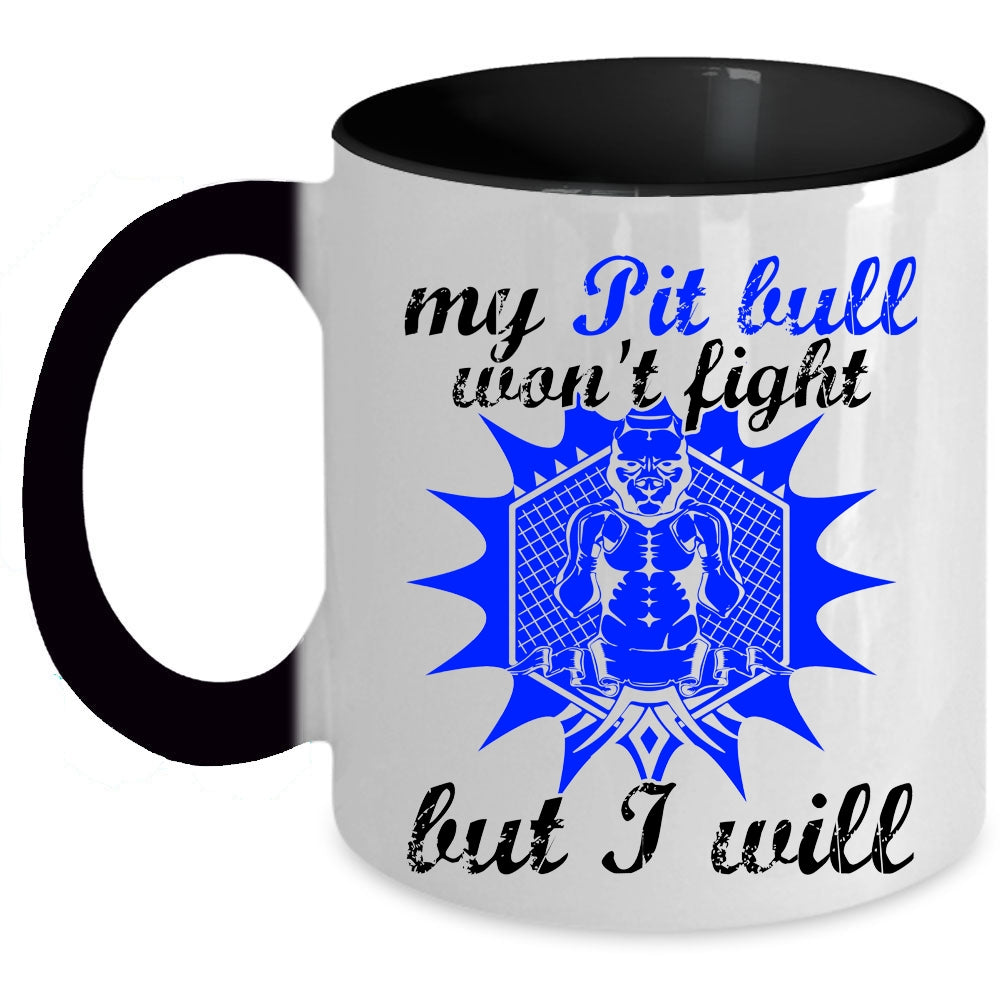 Cool Pit Bull Coffee Mug, My Pit Bull Won't Fight But I Will Accent Mug