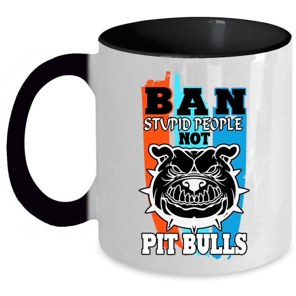 Cool Pit Bulls Coffee Mug, Ban Stupid People Not Pit Bull Accent Mug