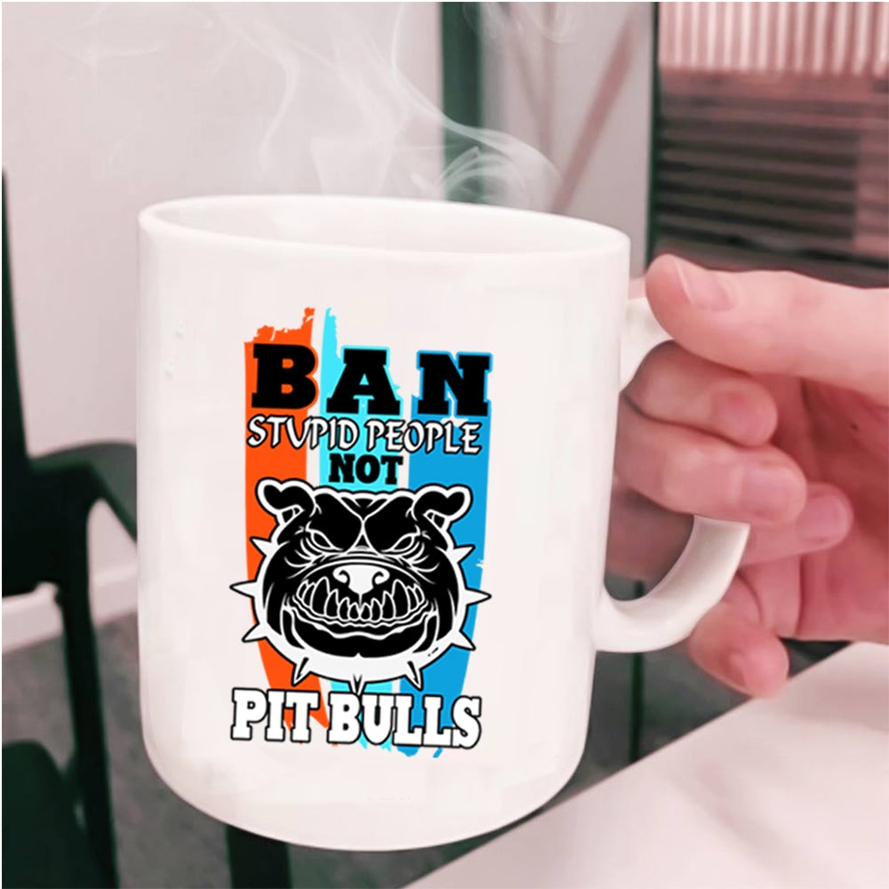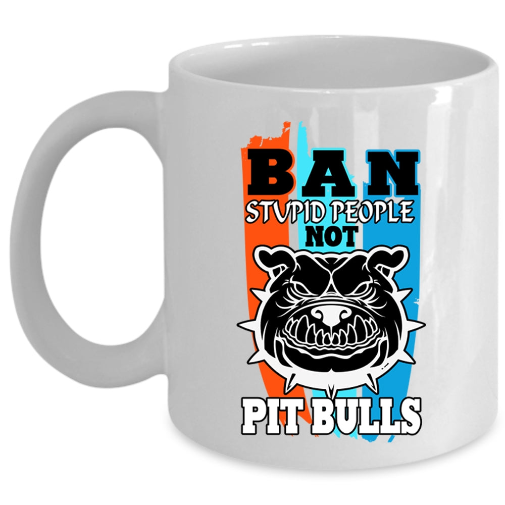 Cool Pit Bulls Coffee Mug, Ban Stupid People Not Pit Bull Cup