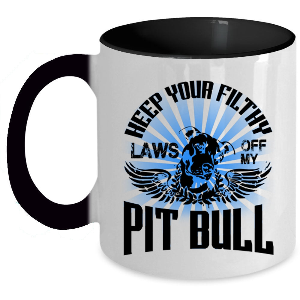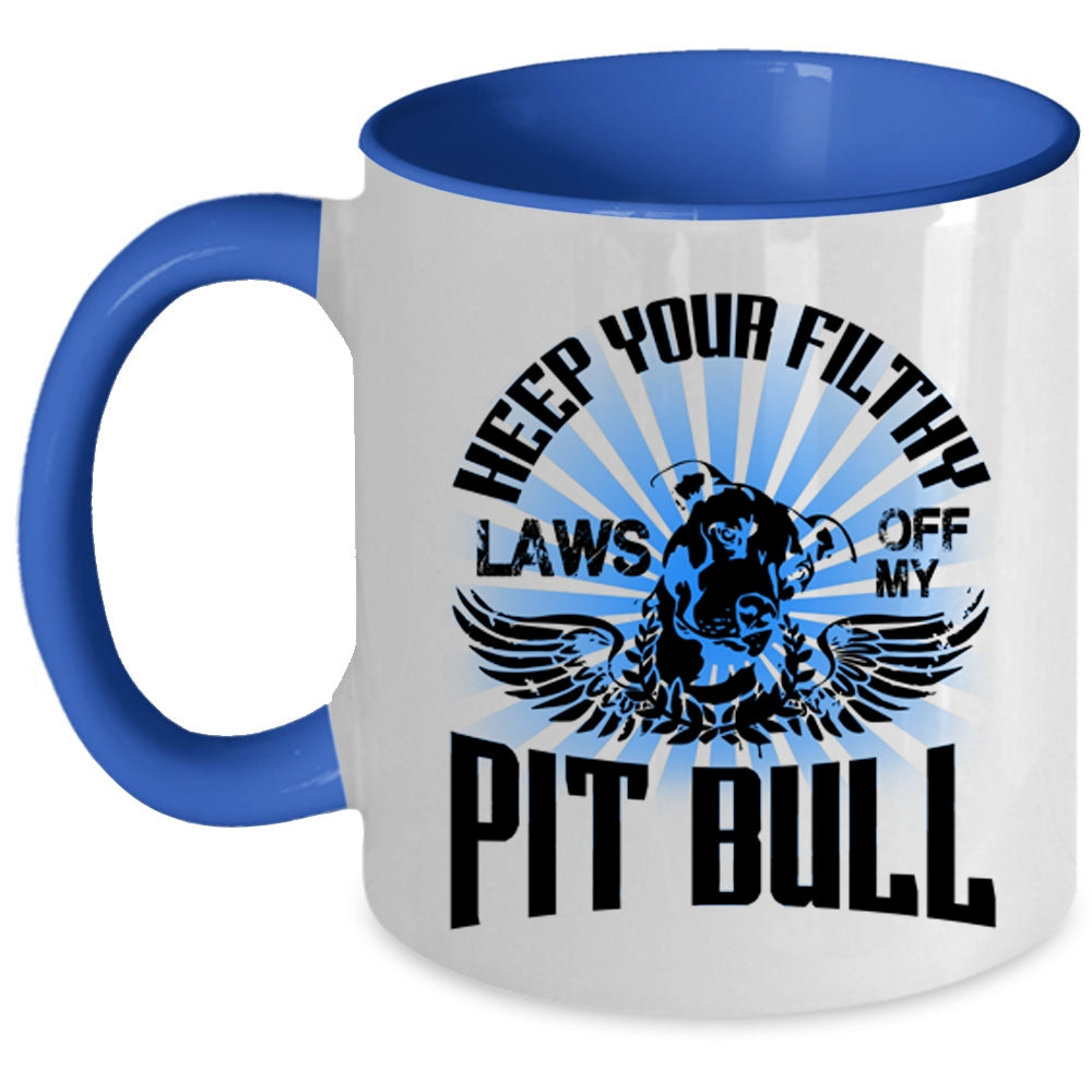 Cool Pitbull Coffee Mug, Keep Your Filthy Laws Off My Pit Bull Accent Mug