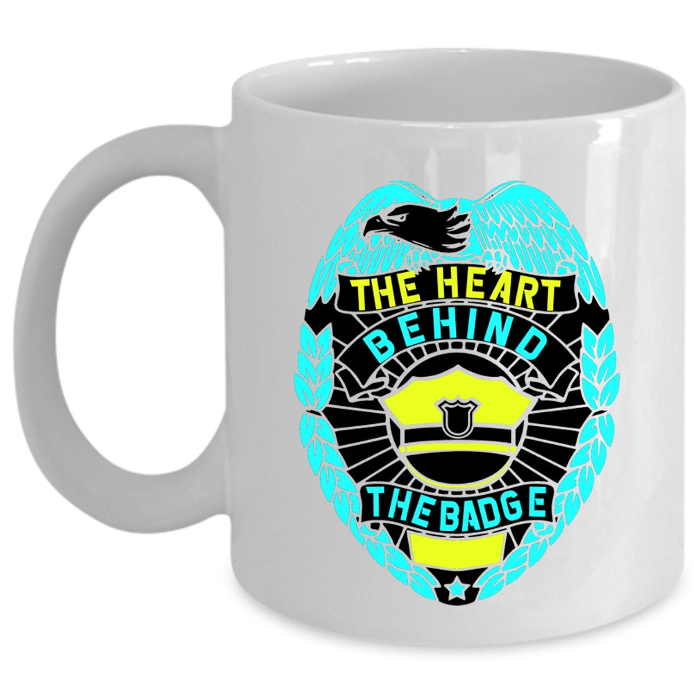 Cool Police Officer Coffee Mug, The Heart Behind The Badge Cup