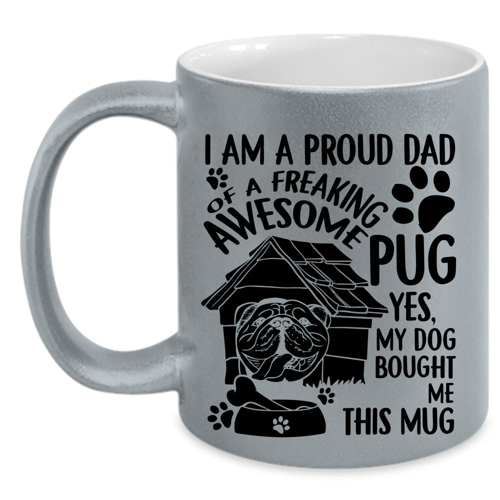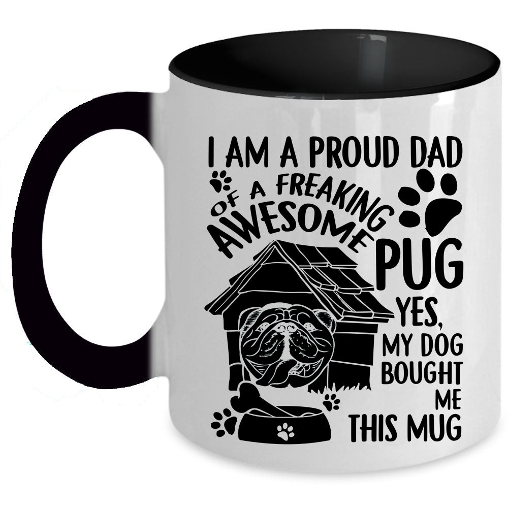 Cool Pug Dad Coffee Mug, I Am A Proud Dad Of An Awesome Pug Accent Mug