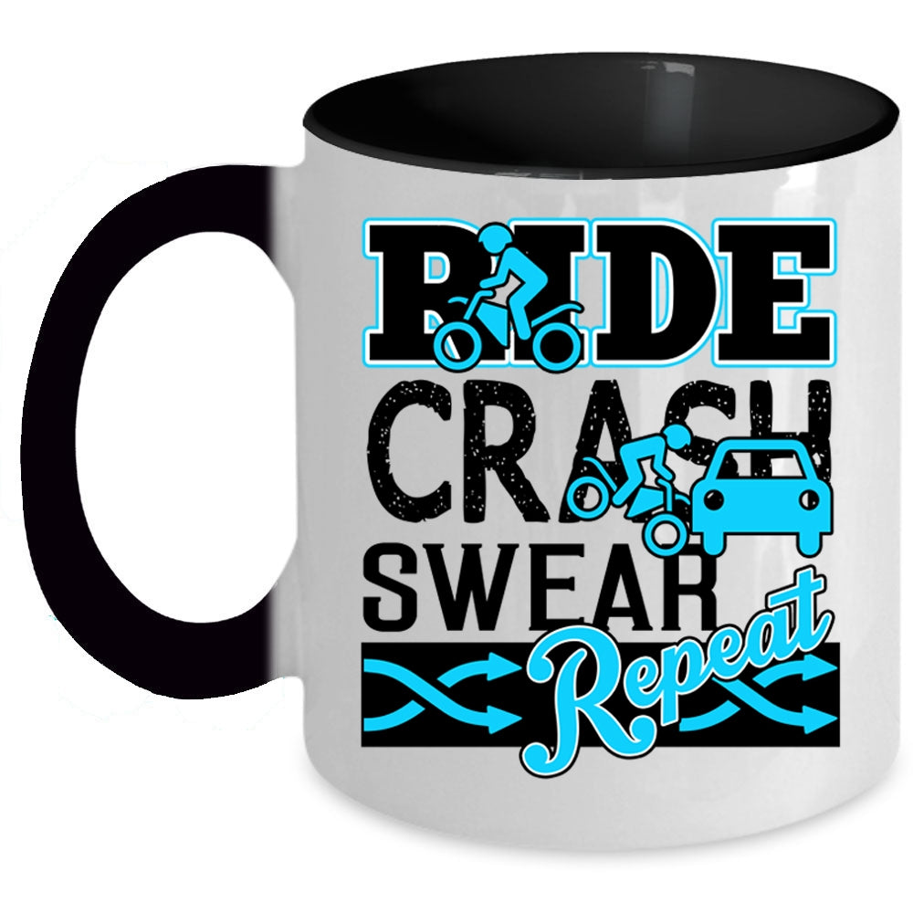 Cool Riding Coffee Mug, Ride Crash Swear Repeat Accent Mug