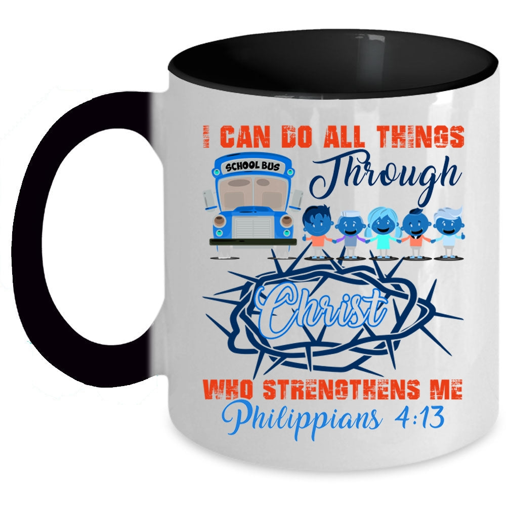 Cool School Bus Driver Coffee Mug, I Can Do All Things Accent Mug