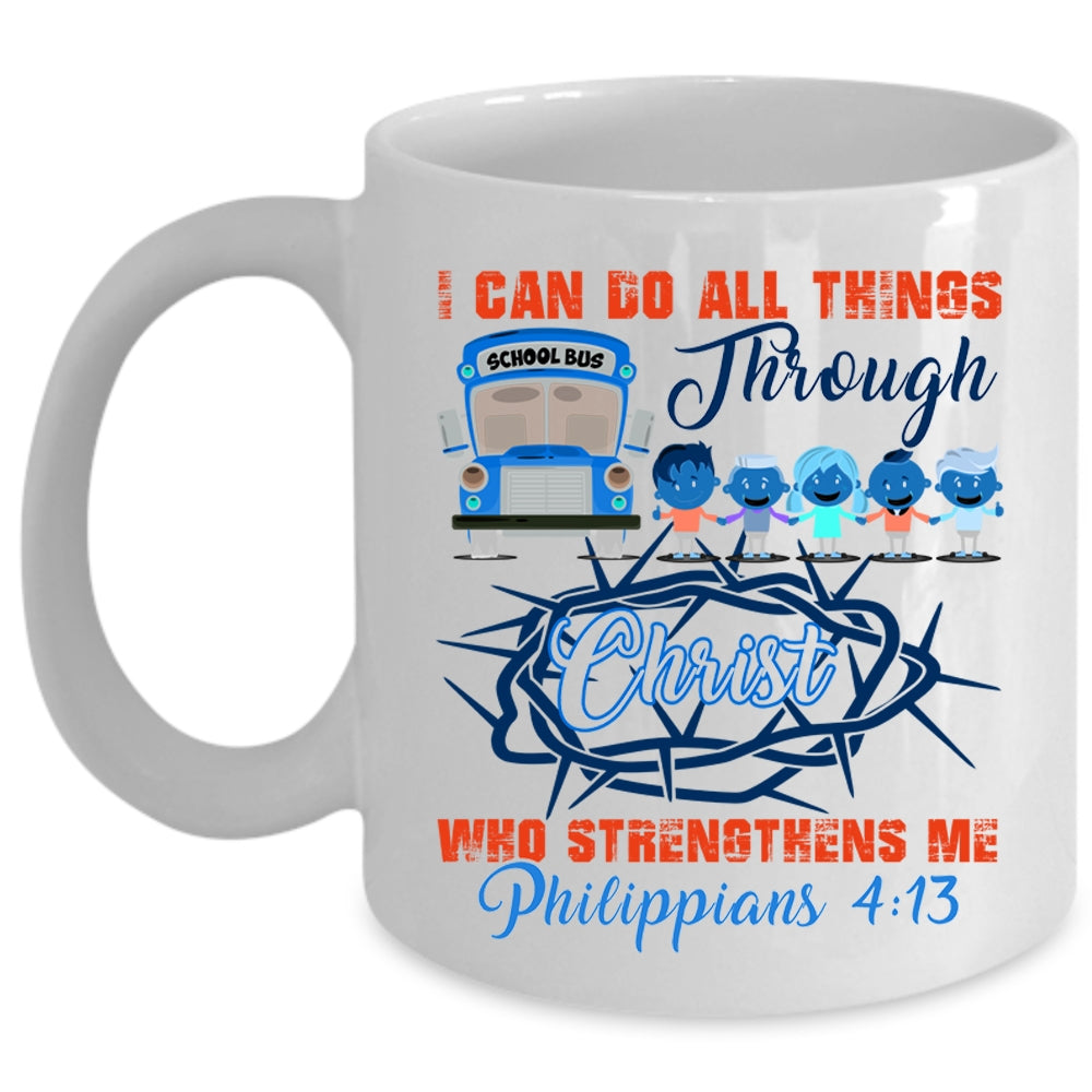 Cool School Bus Driver Coffee Mug, I Can Do All Things Cup