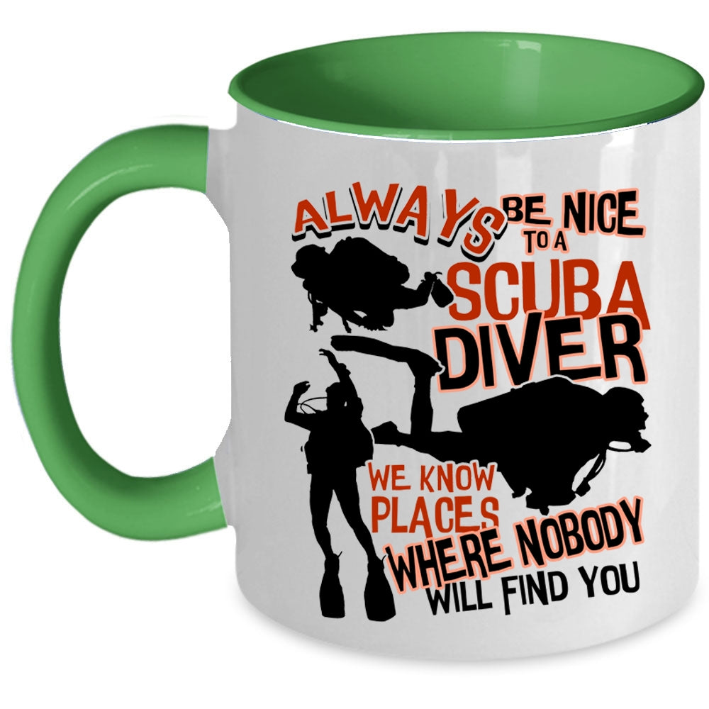Cool Scuba Diver Coffee Mug, Always Be Nice To A Scuba Diver Accent Mug