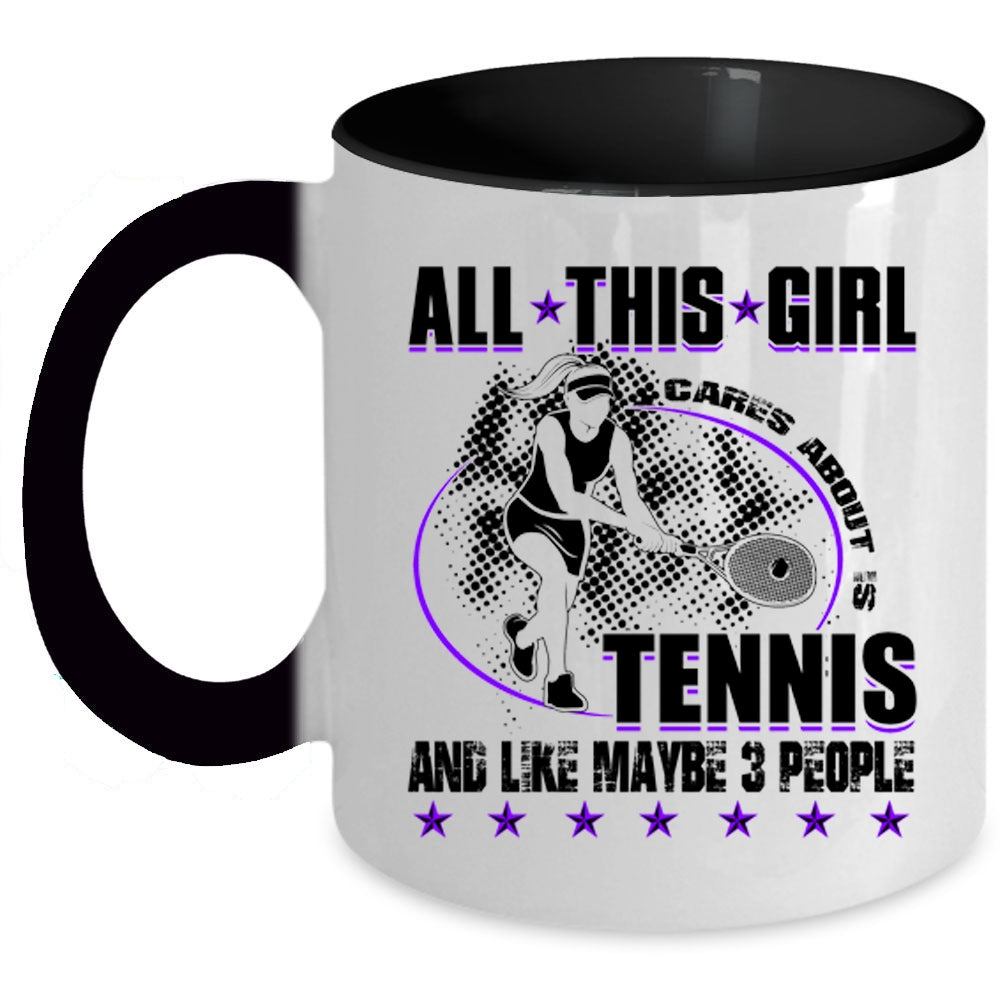 Cool Tennis Coffee Mug, All This Girl Cares About Is Tennis Accent Mug
