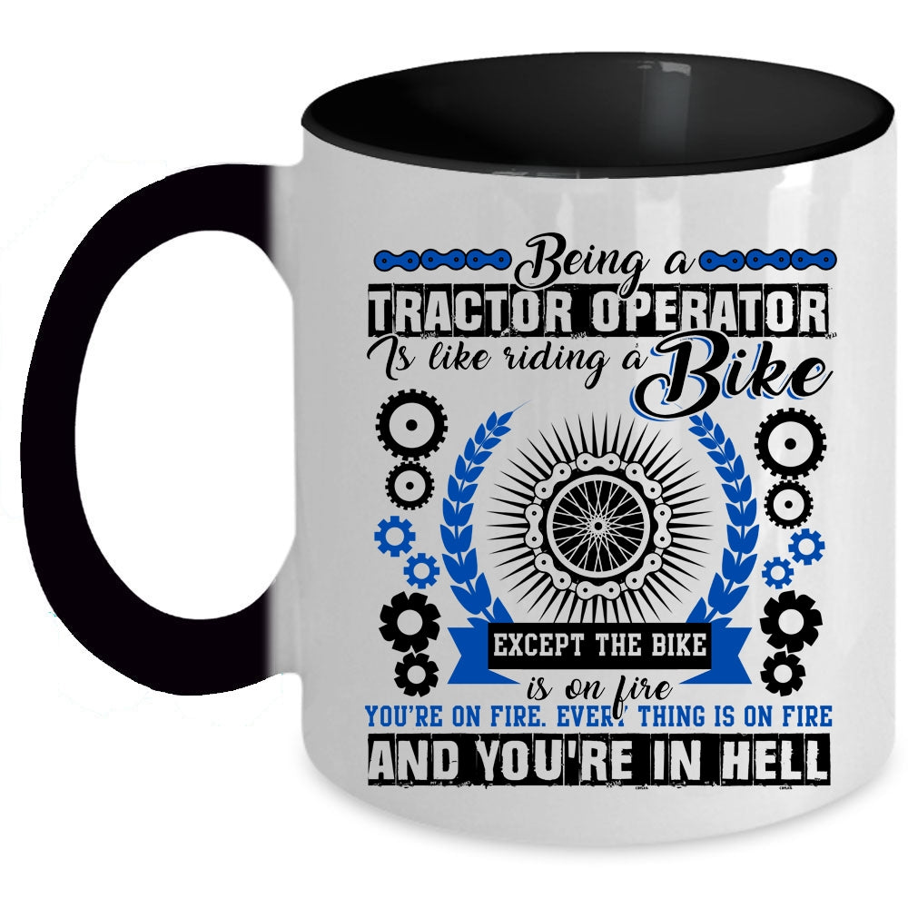 Cool Tractor Coffee Mug, Being A Tractor Operator Is Like A Bike Accent Mug
